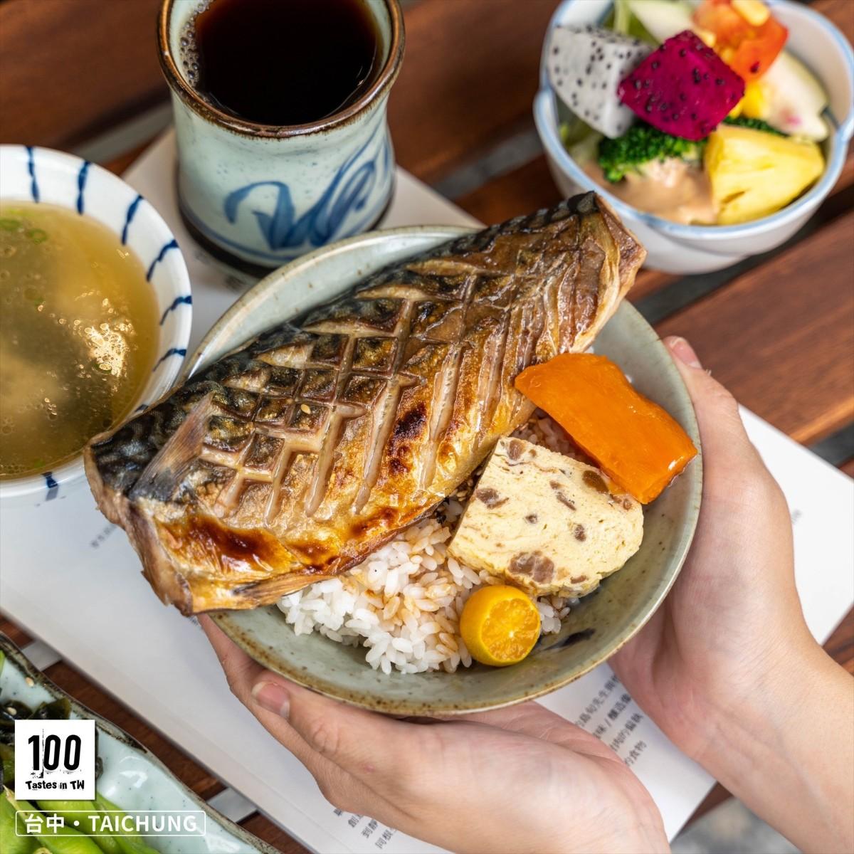 鯖魚油脂豐富、外皮烤得酥香。白飯除了淋上丼汁,還有菜脯玉子燒跟蜜地瓜。