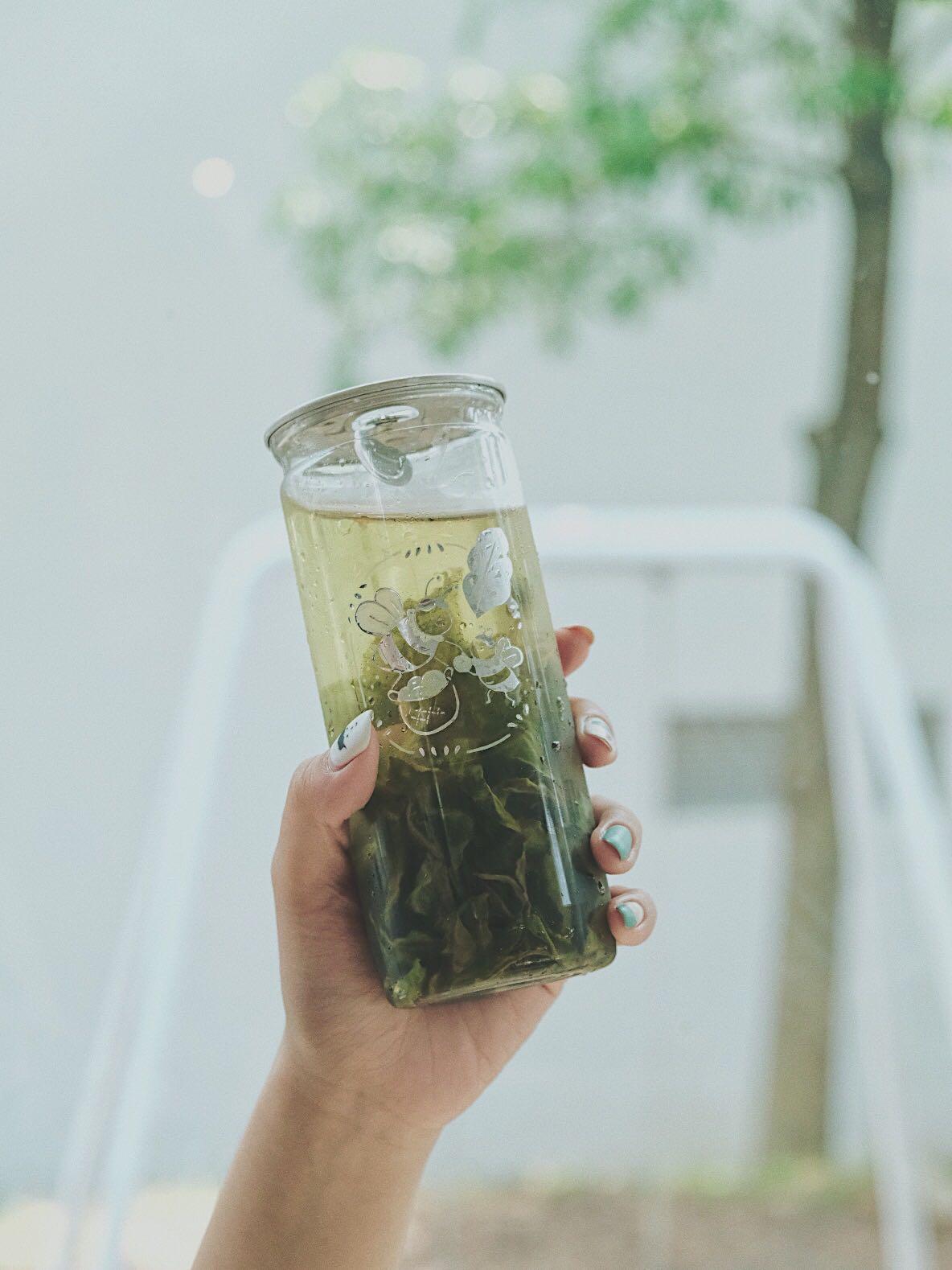 照片那杯是奶茶,忘記是小農鮮奶茶還是伯爵鮮奶茶,反正我不能喝QQ #台灣高山茶 容器是塑膠易開罐,方便攜帶但以環保來說不大好,裡面還有茶葉,我覺得蠻喜歡的,不會澀還有剛好的茶韻味