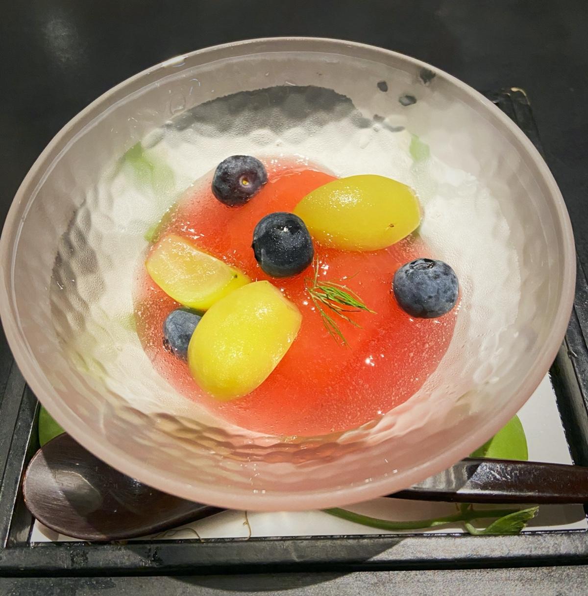 洛神紫蘇蘋果配上藍莓及麝香葡萄