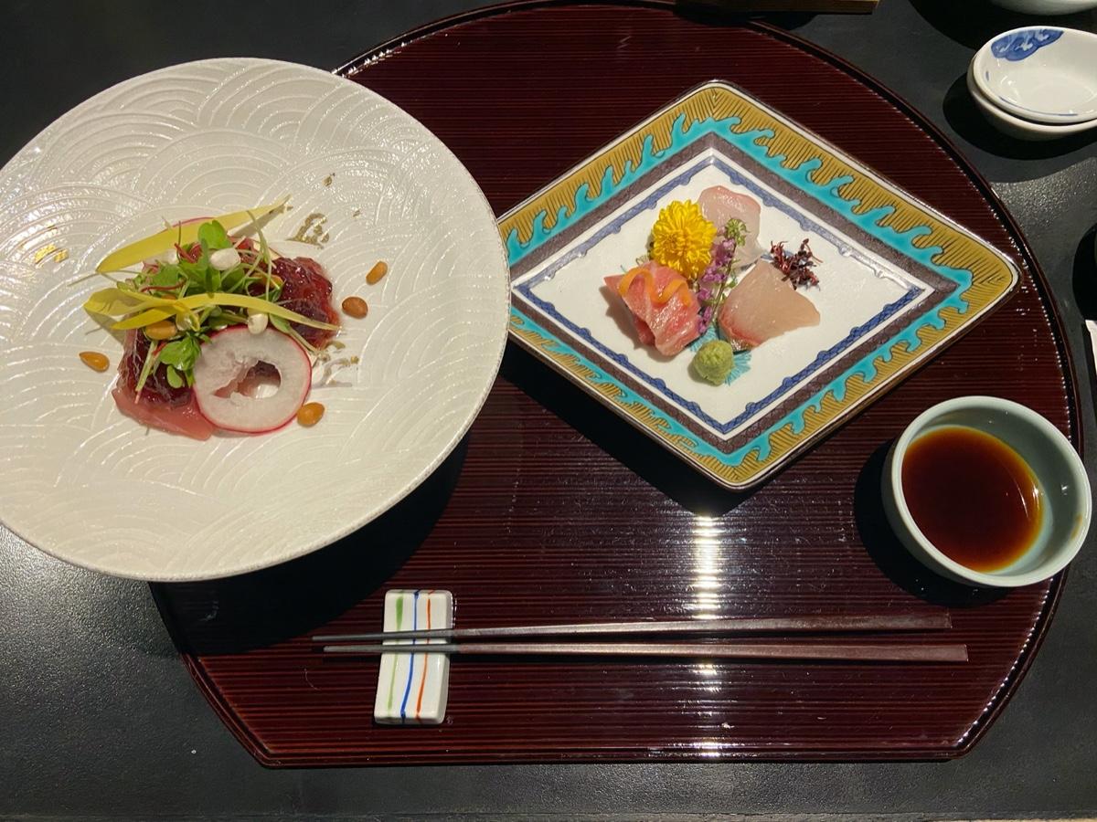 左邊這道比較特別,是無花果配上紅酒凍及鮪魚赤身