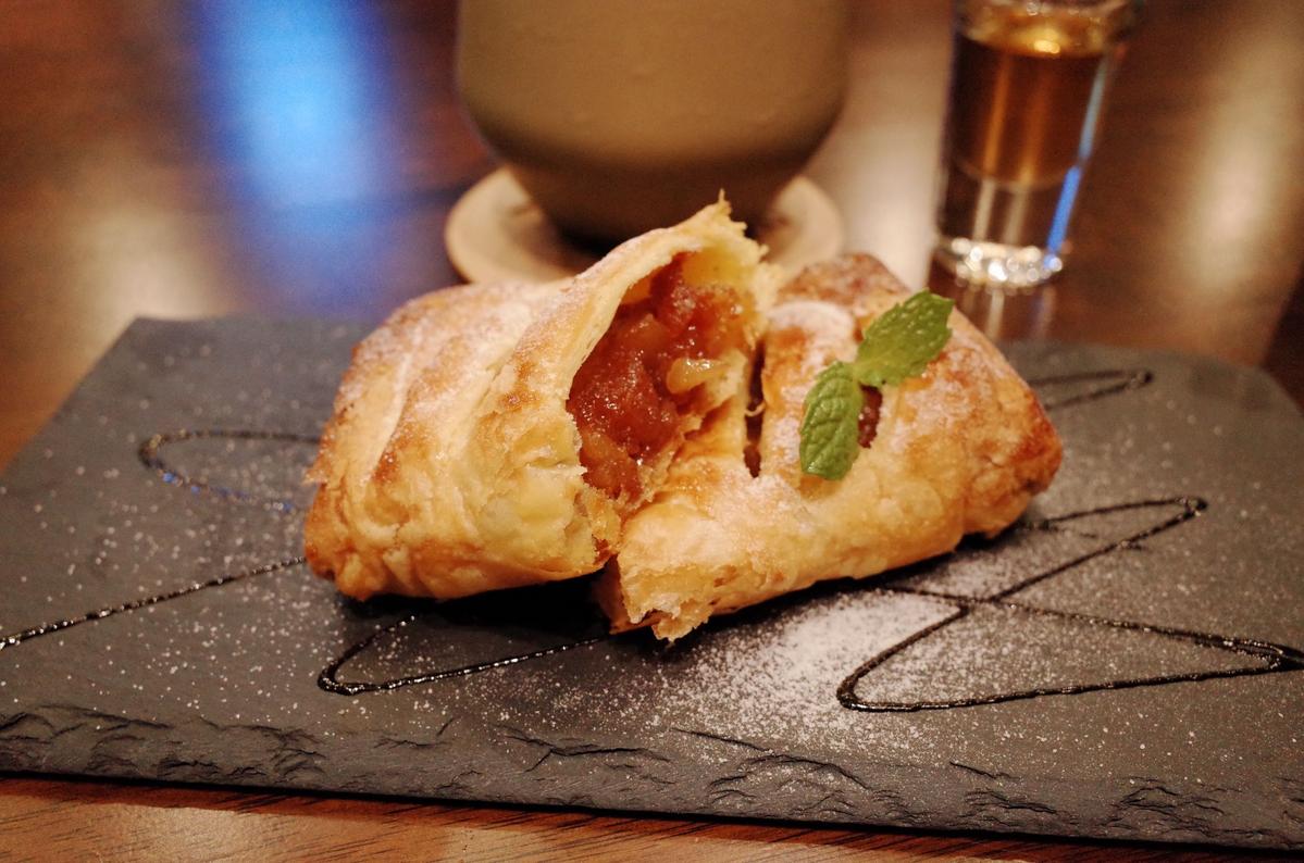 蘋果派我個人很喜歡!外層的酥皮烤的超酥脆。叉子戳下去的瞬間喀滋聲超療癒(⁎⁍̴̛ᴗ⁍̴̛⁎)。內餡微酸,但我耐酸度很低,對一般人來說應該就是剛好的酸甜滋味。推推👍🏻