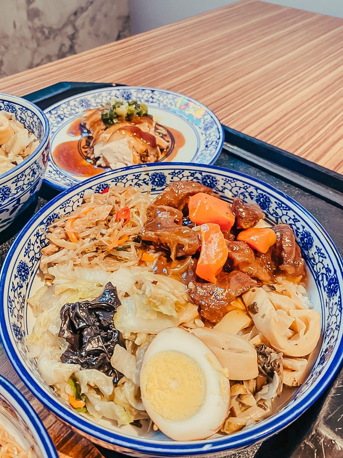 湯碗和餐盤是配套的瓷製餐具,這點非常加分,增加了餐點的精緻感,也讓顧客能避免美耐皿餐具帶來的風險。