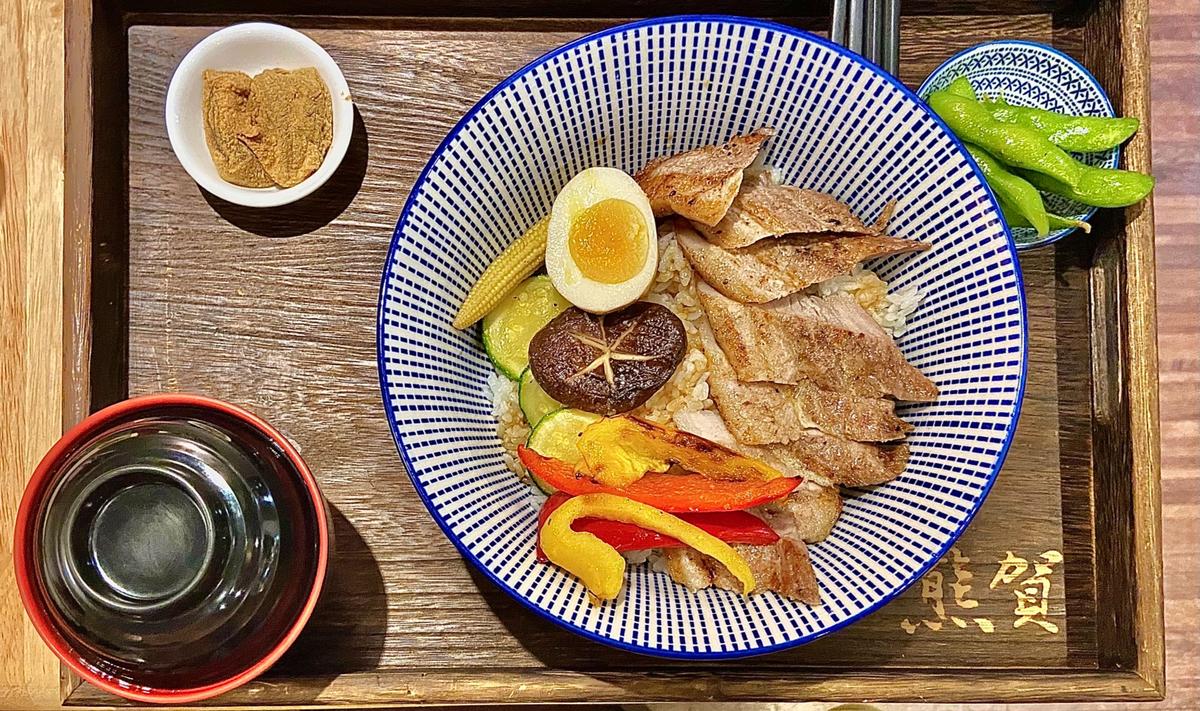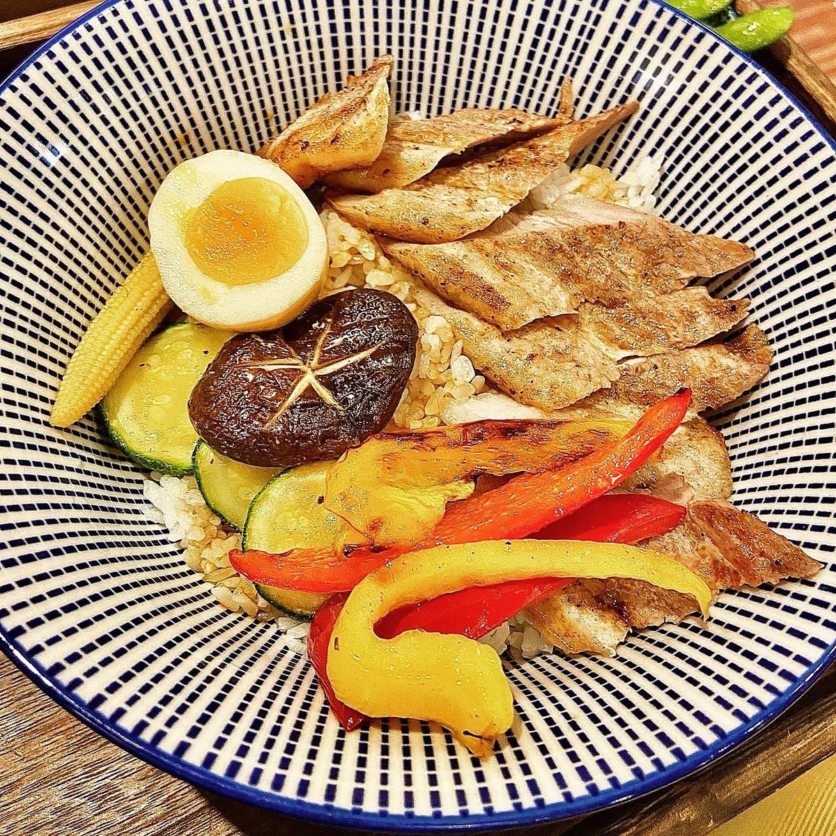 不同於一般餐廳常見的配菜,這裡的配菜Le特別喜歡有菇、紅黃椒、櫛瓜、玉米筍和溏心蛋!另外還有附上毛豆、海帶芽味增湯和小甜點黑糖蕨餅。豬五花部分,切的厚薄度適中,每片肉肥瘦皆有,肉質嫩、保有的油脂剛好也不會過多!粒粒分明的白飯搭配著不同的配菜和豬五花真的是色香味都有啦🥳🥳🥳!