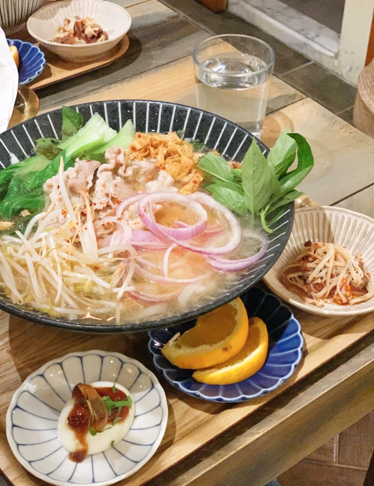 一開始看到越南清湯,內心期待值爆表因爲湯很好喝,結果竟然是泰式的口味?味道是酸的,和期望直有落差。小菜的部分,涼拌金針菇非常的酸,白醋加太多了⋯還是把他硬吃完了