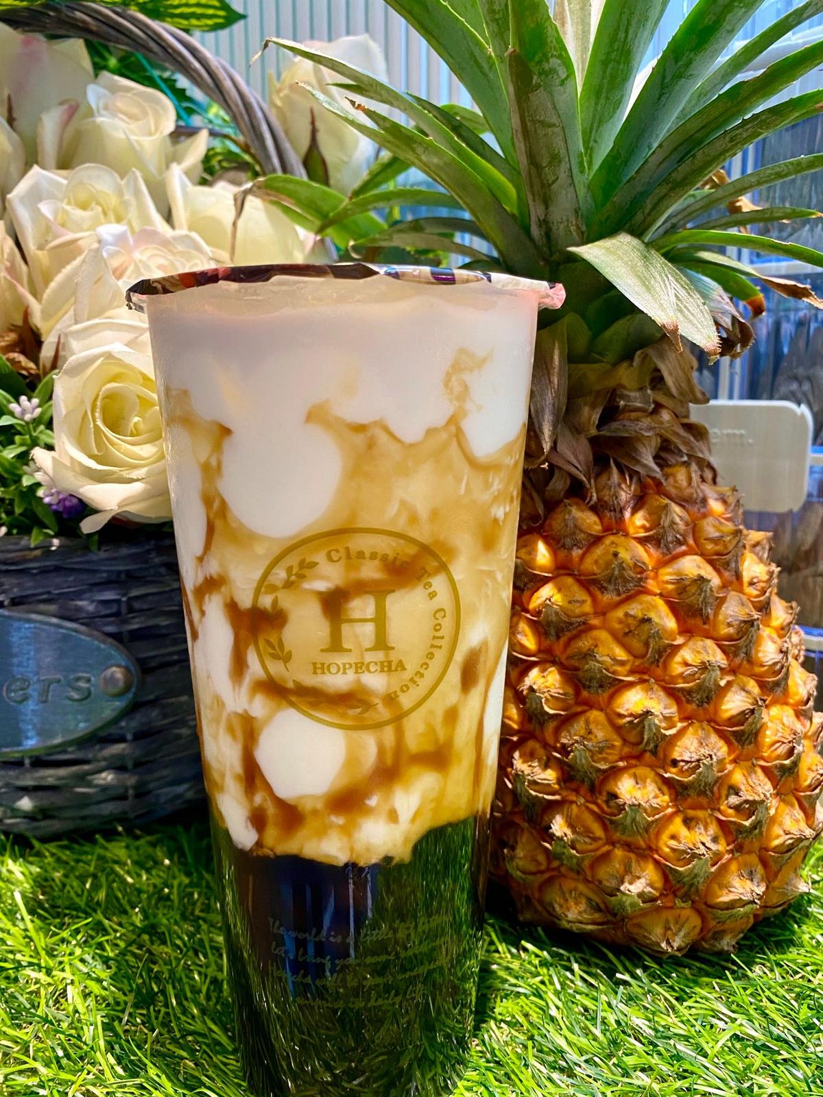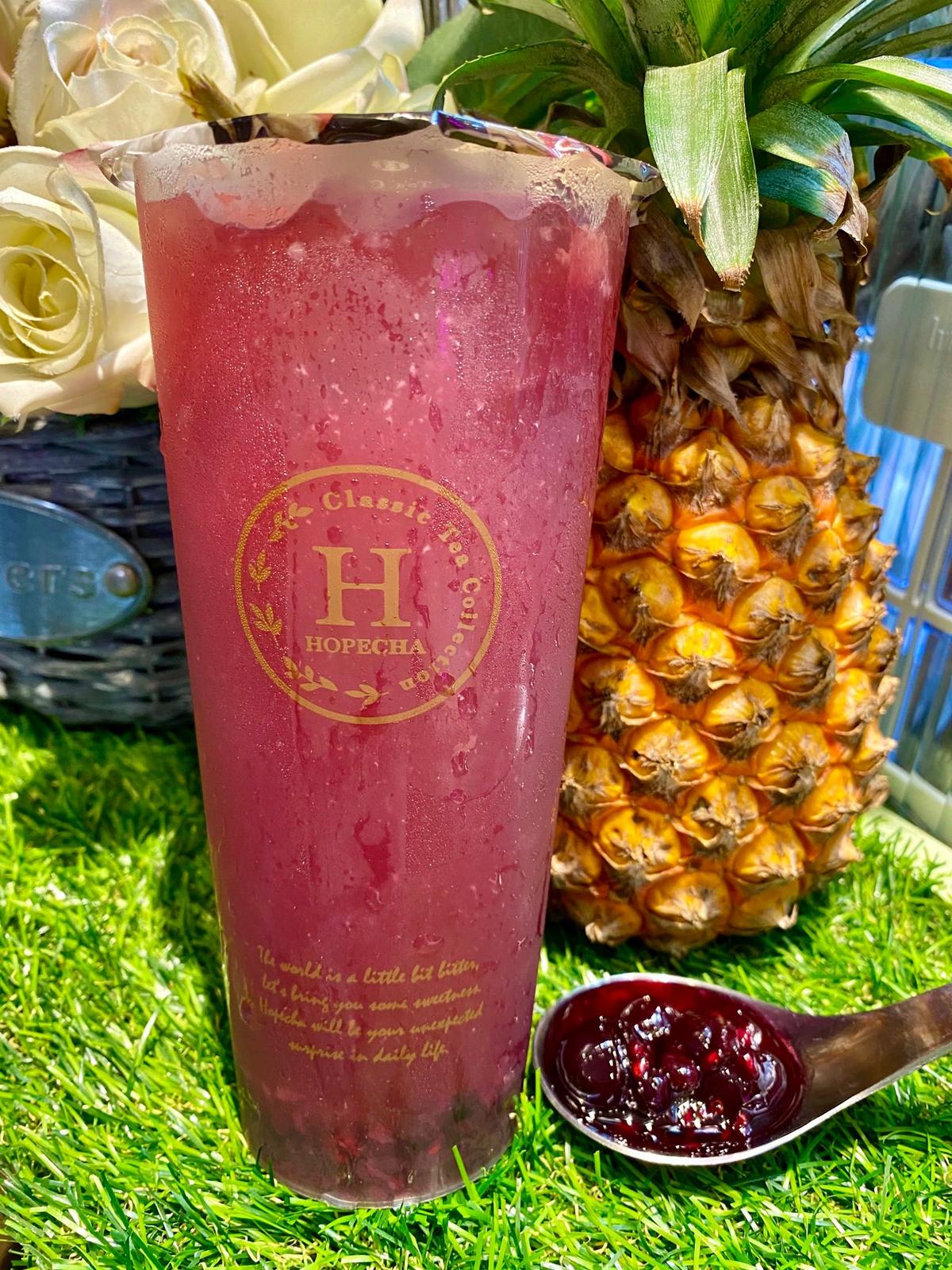 HOPECHA堅持使用新鮮水果丶自熬果漿與蔗糖🍍果酪是指水果+優酪乳+茶凍+蘆薈🈵橙柚果酪加入柳橙、葡萄柚,口感更佳🙆🏻♀️優酪乳加入水果後果香味十足,喝了可以促進腸胃蠕動~