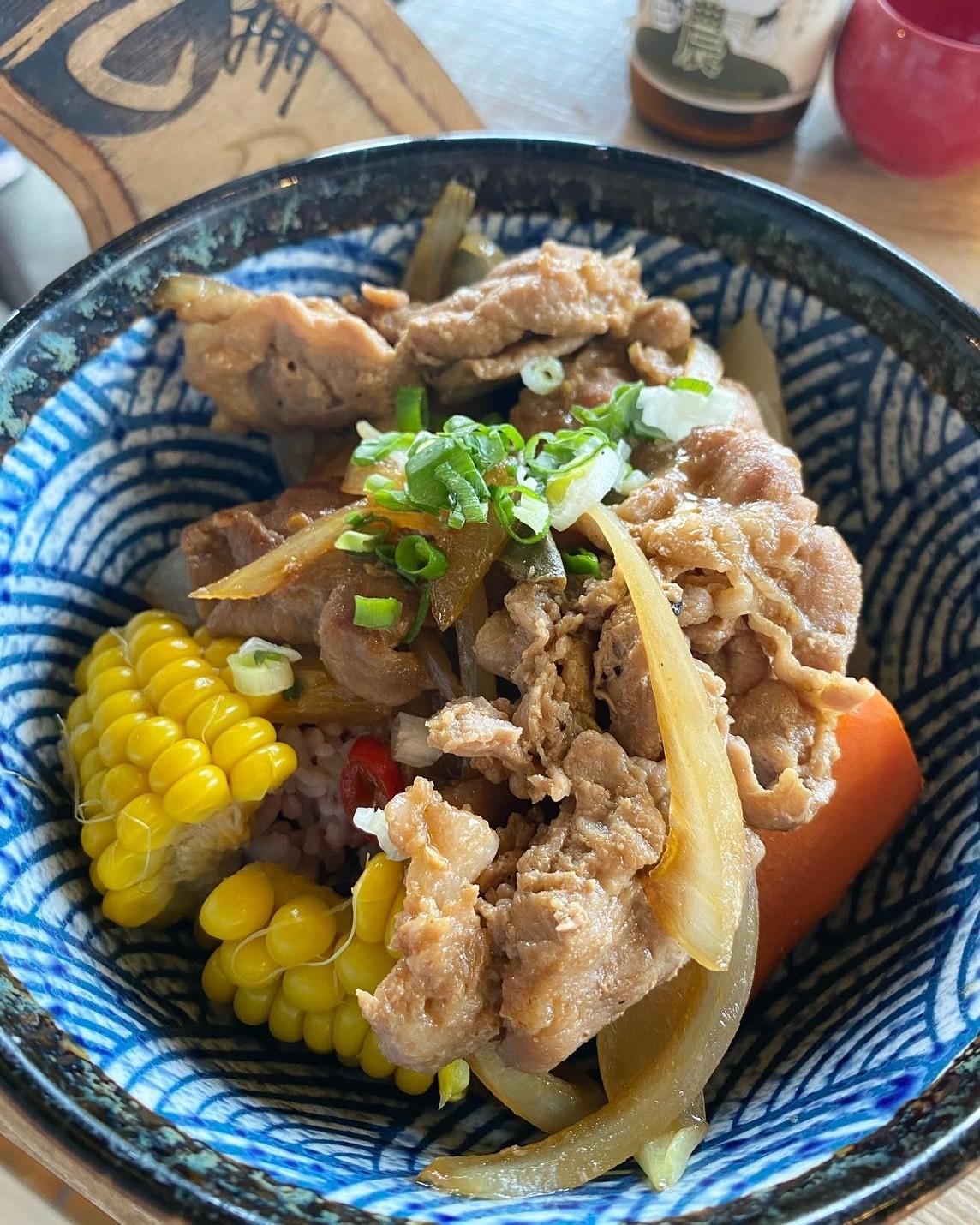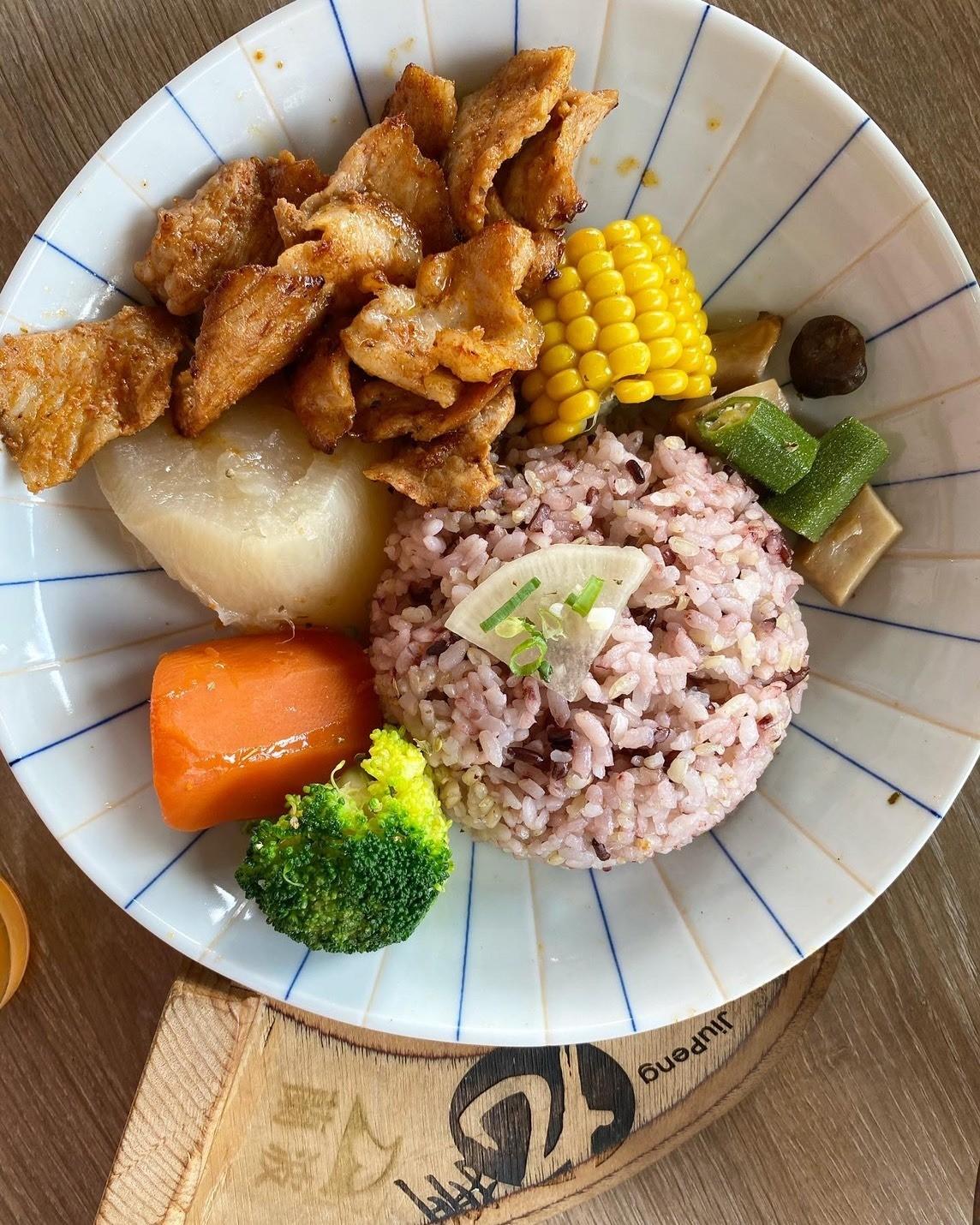 婆婆點了這道飯,平常自栩為小廚神的婆婆也說這道很好吃,伊比利豬很脆口彈牙,附上的蔬菜很均衡營養,完全是五色蔬果,拍起來也好看。