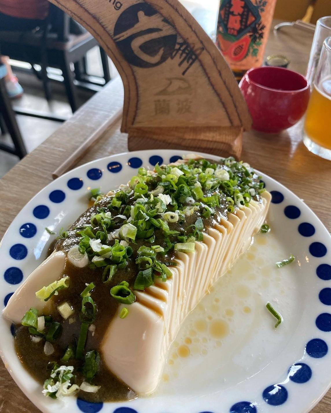 不像傳統的皮蛋豆腐只是切好擺盤,而是把豆腐切成薄片狀,然後淋上打成醬的皮蛋,再撒上滿滿的蔥花,除了好看,吃起來很綿密,也解決了很多人不敢直接吃皮蛋的困擾。