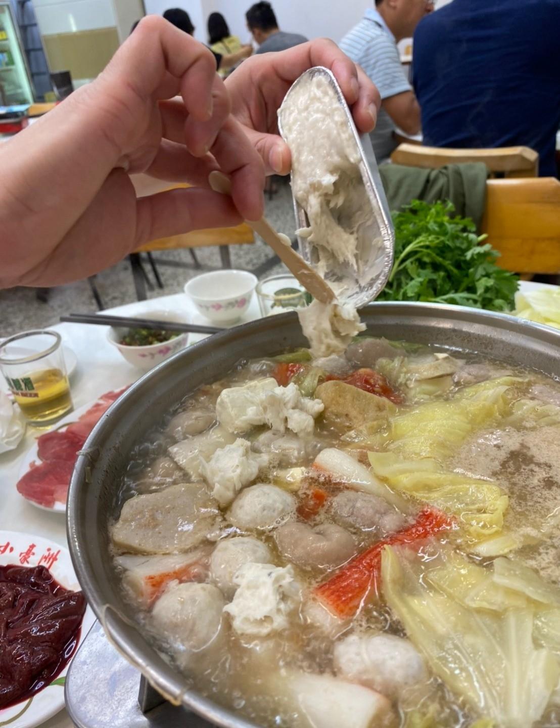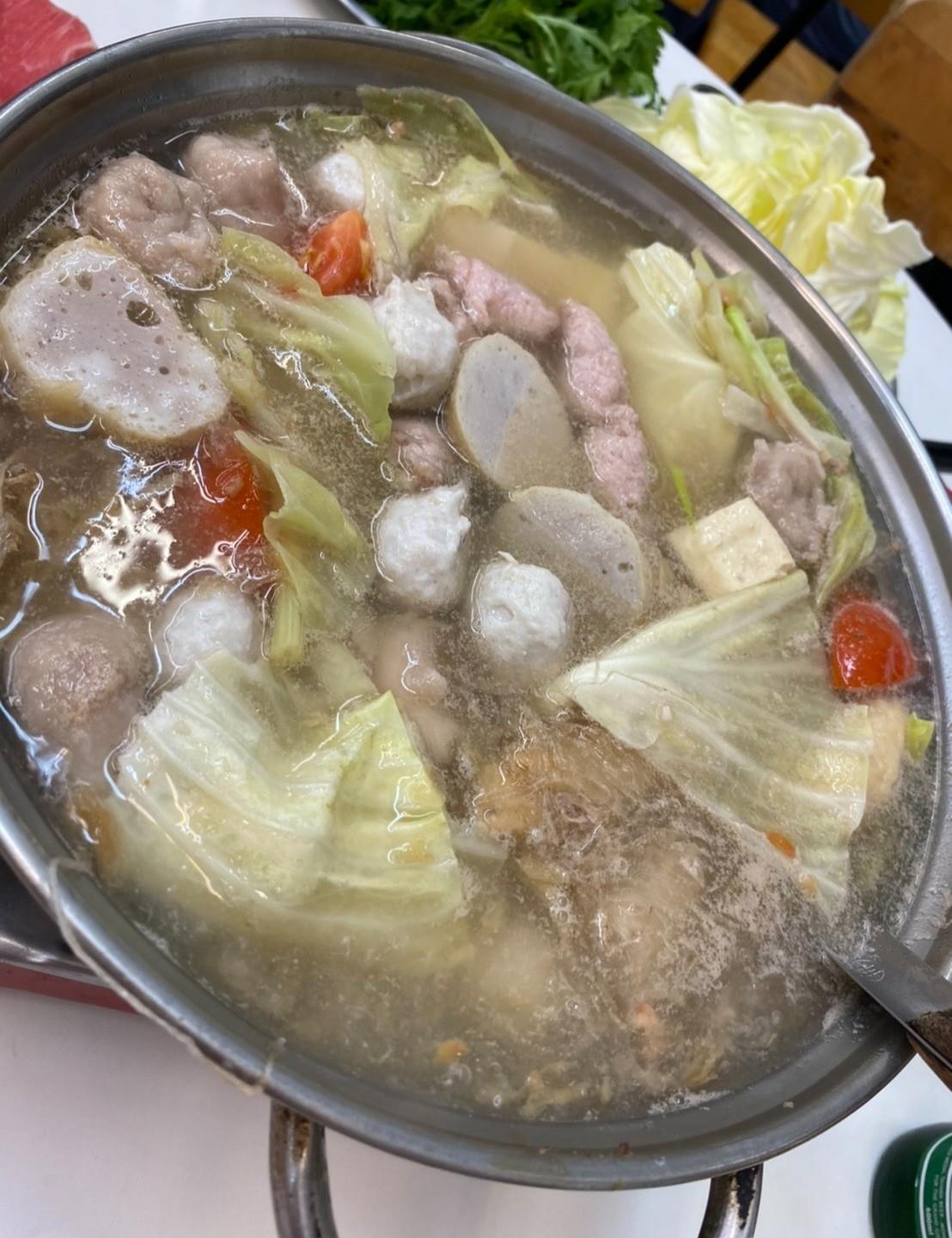 鍋底看起來很清澈,原來沙茶爐的沙茶不是在爐裡面,是沾醬有沙茶,再加一點湯進去,我們一行人都有錯誤的想像(笑)。