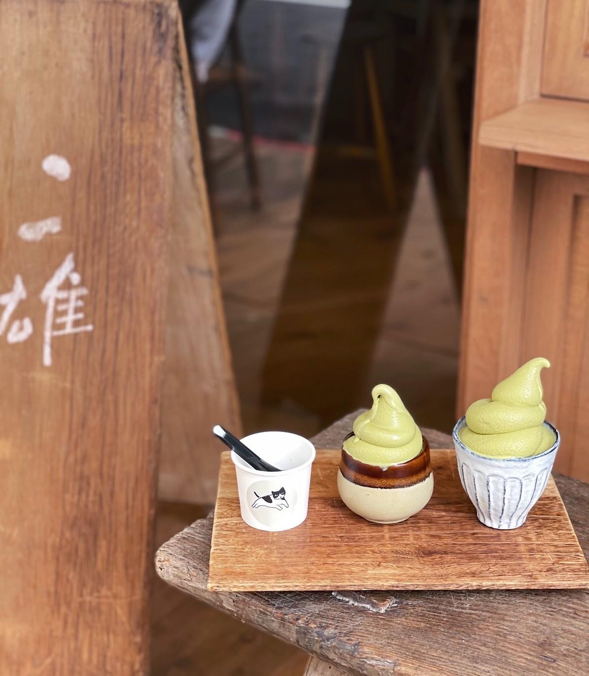濃郁的抹茶冰淇淋味道偏苦,搭配大小珍珠或是甜筒一起品嚐增加甜味。