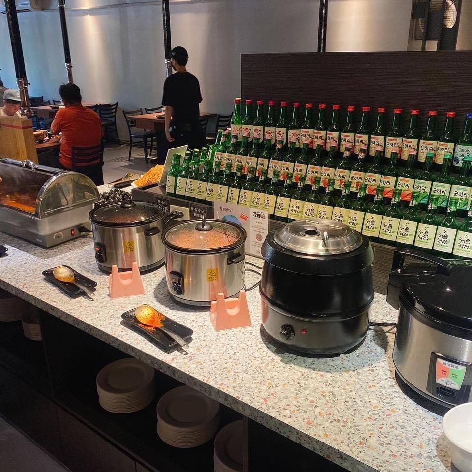 比較特別的部分是剛開始烤爐中間會先煮大醬湯,滾了再改用小鑄鐵盤烤醃漬肉片,圓盤上則是烤生肉片,比較不需要換烤盤。