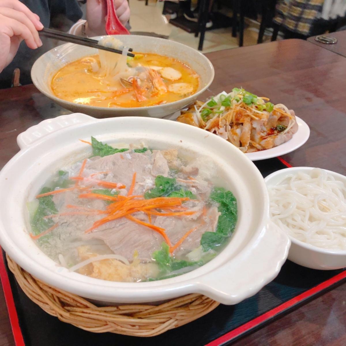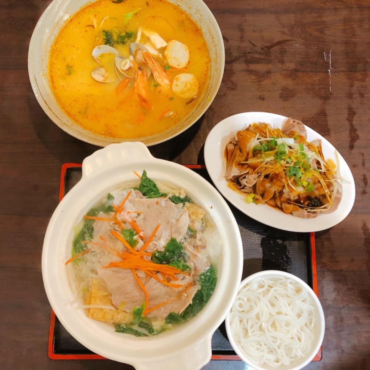 🔸雲南過橋米線$135 🔸泰式海鮮酸辣河粉$135 🔸清燙肉片$100 ➔ 過橋米線湯頭是偏淡的味道,適合想吃清爽口味的人,米線我覺得吃起來就是細的米苔目~ 泰式海鮮酸辣的味道滿酸的,但很開胃!尾韻有椰奶的香味~河粉很Q,Q彈到筷子有點難夾🤣 燙肉片滿有嚼勁的,上面淋的醬油不會太鹹,蔥花、薑絲和蒜頭很提味~ (個人主觀感受😊) 💡台北市大安區雲和街51號 - #台北美食 #泰式酸辣海鮮河粉 #雲南過橋米線 #異國料理