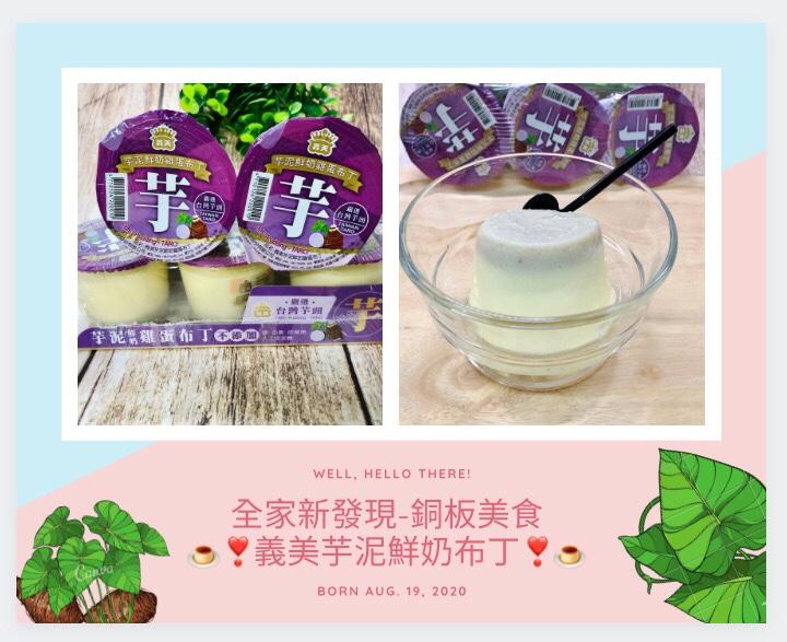 【全家新發現~義美芋泥鮮奶雞蛋布丁】銅板價的手工布丁?! 便利商店居然也吃的到/天然芋頭香/不是化學香精味喔/口感跟自己在家做的一樣/奶香濃郁好味道/台灣本土的良心廠商~喜歡布丁的朋友一定要試試看喔!