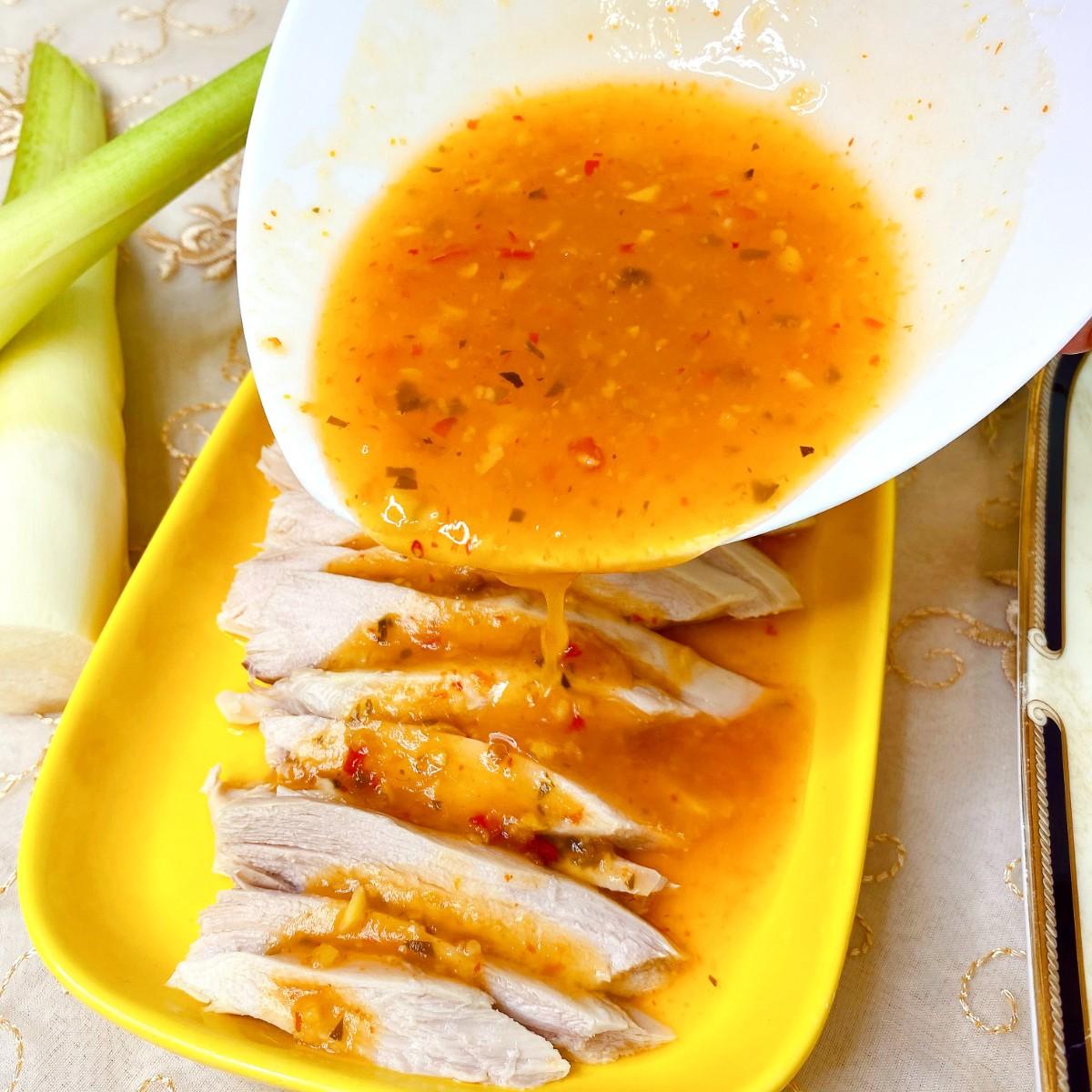 軟嫩的雞肉配上泰式酸辣醬