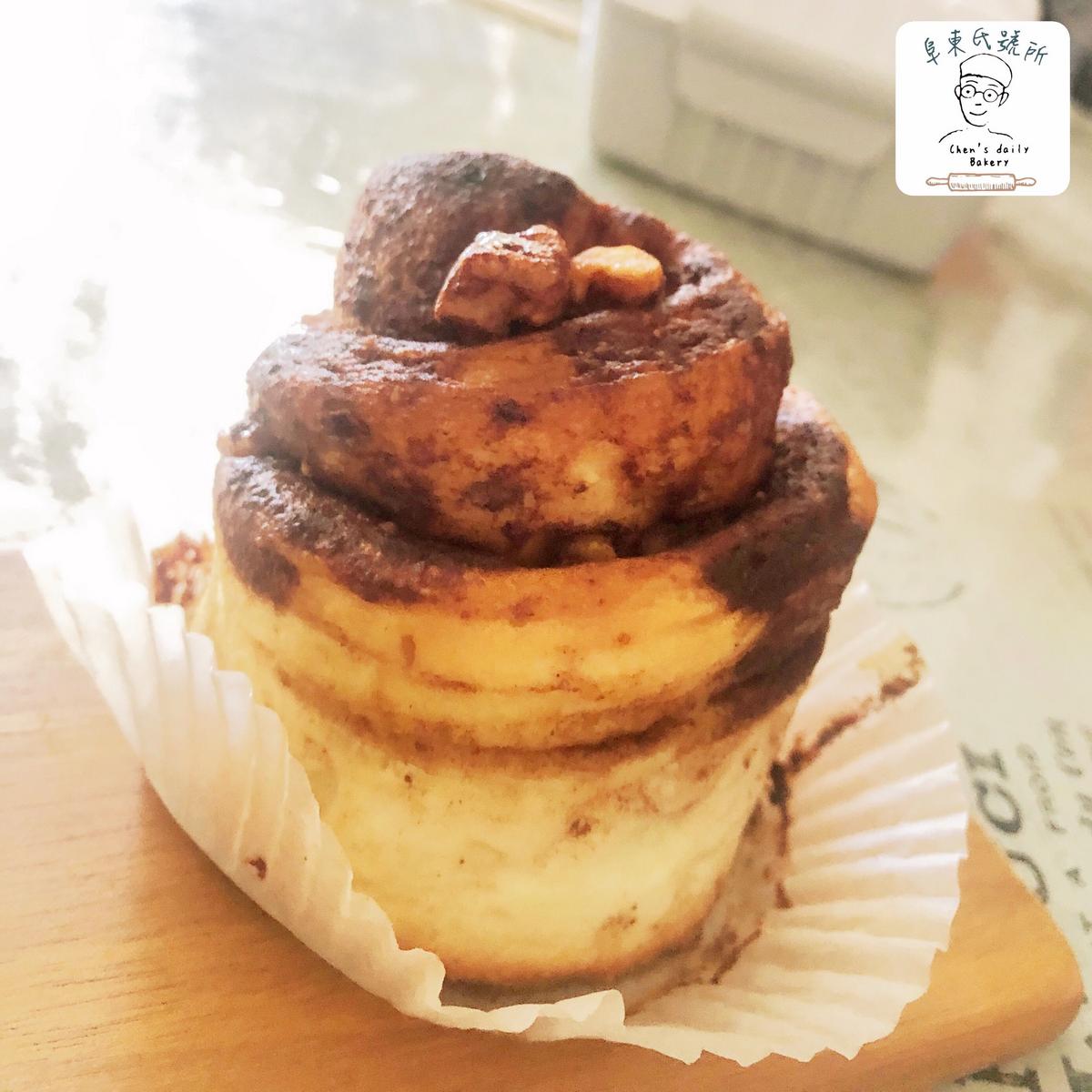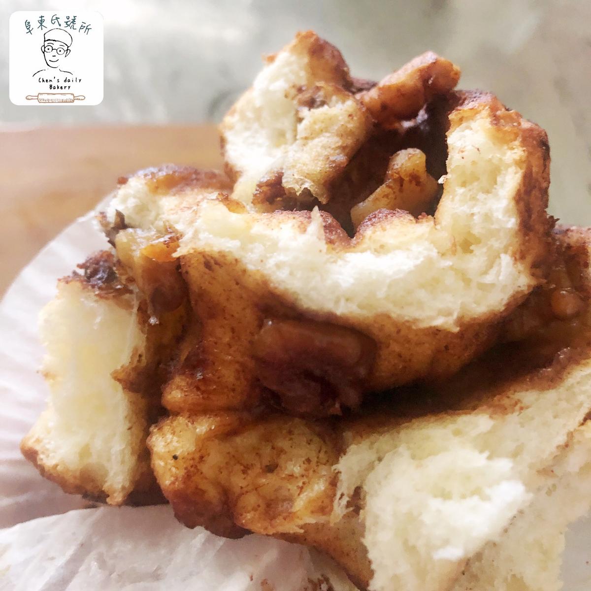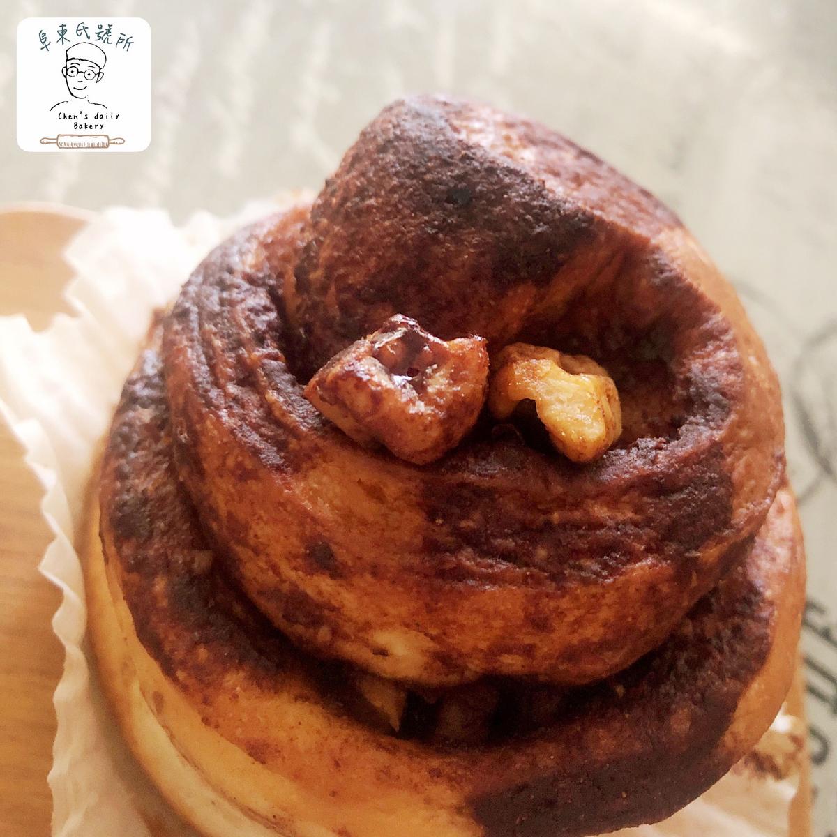 除了滿滿的肉桂糖還加了葡萄乾跟核桃碎,