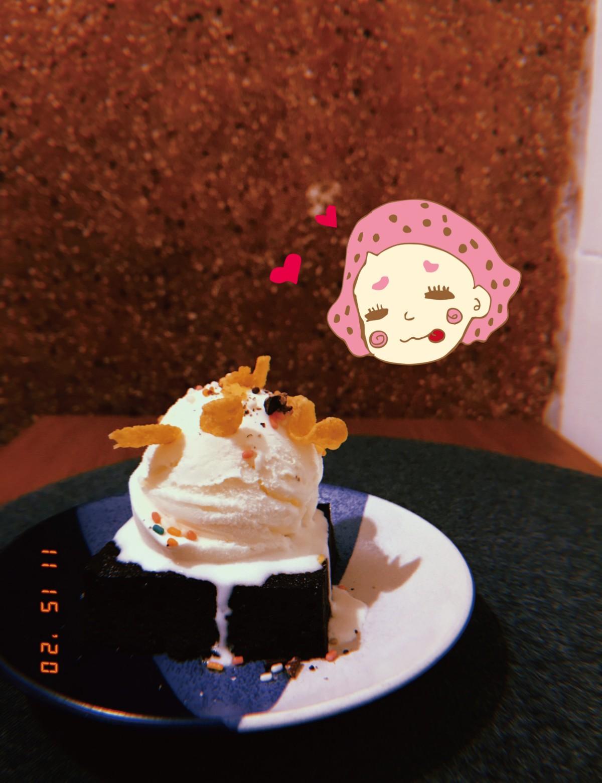 布朗尼+冰淇淋(NT.130)-不會太甜,烤過溫溫的配上冰淇淋很剛好。