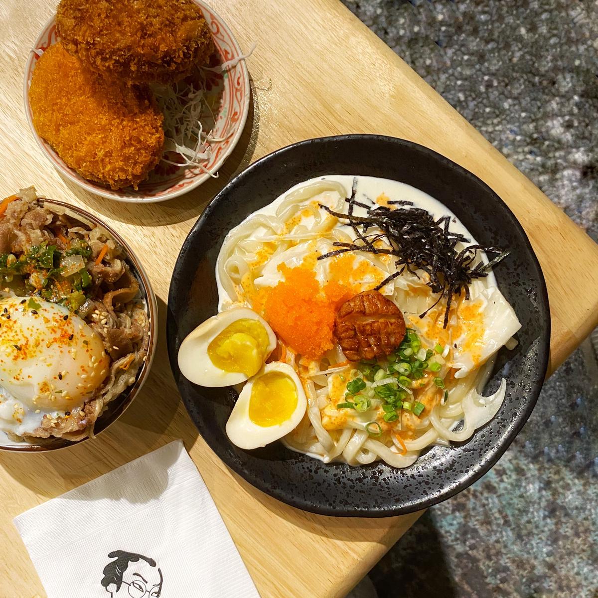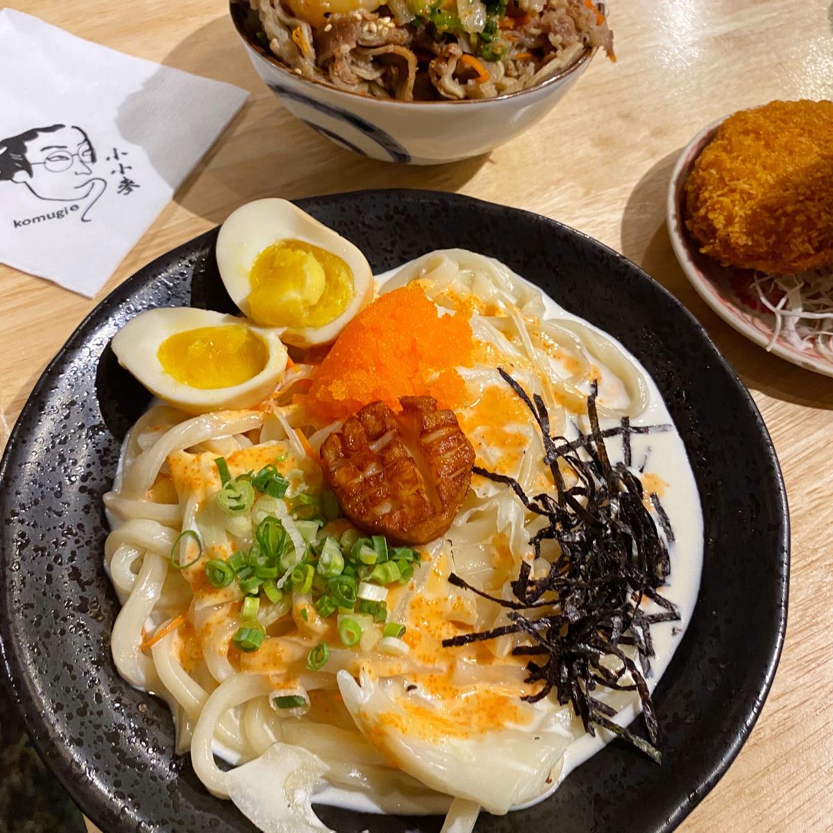 但這次吃的明太子烏龍麵好好吃啊~白醬很濃郁卻不會到很稠、拌著蔥跟魚卵很好吃!cp值很高啊!溏心蛋就比較普通