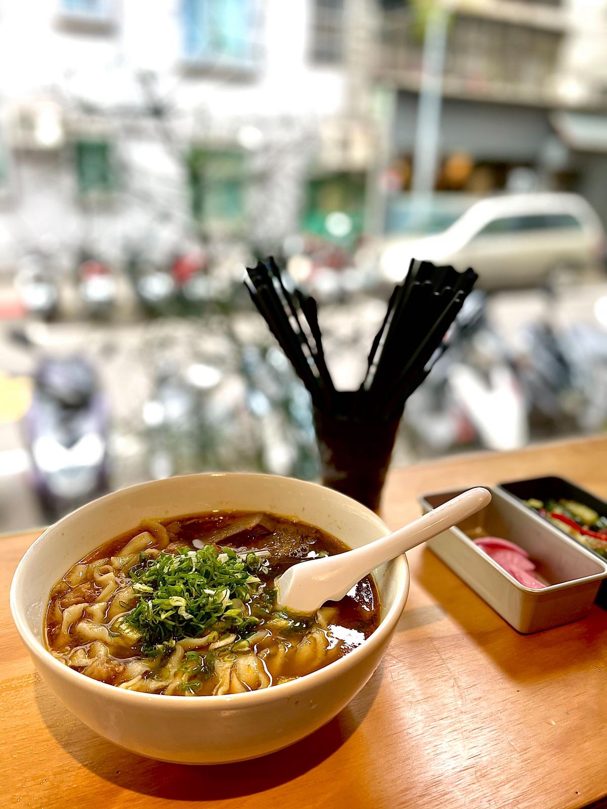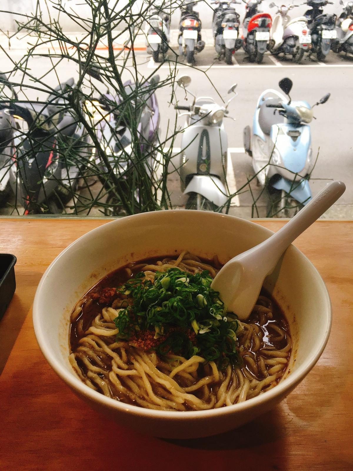 餐點很簡單以牛肉麵為主,還有擔擔麵、蔥油拌麵等,而它的麵條不論是粗或細都軟硬適中又保有彈性,非常好吃。