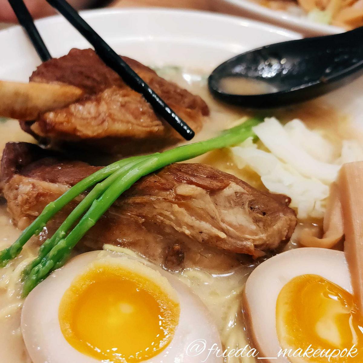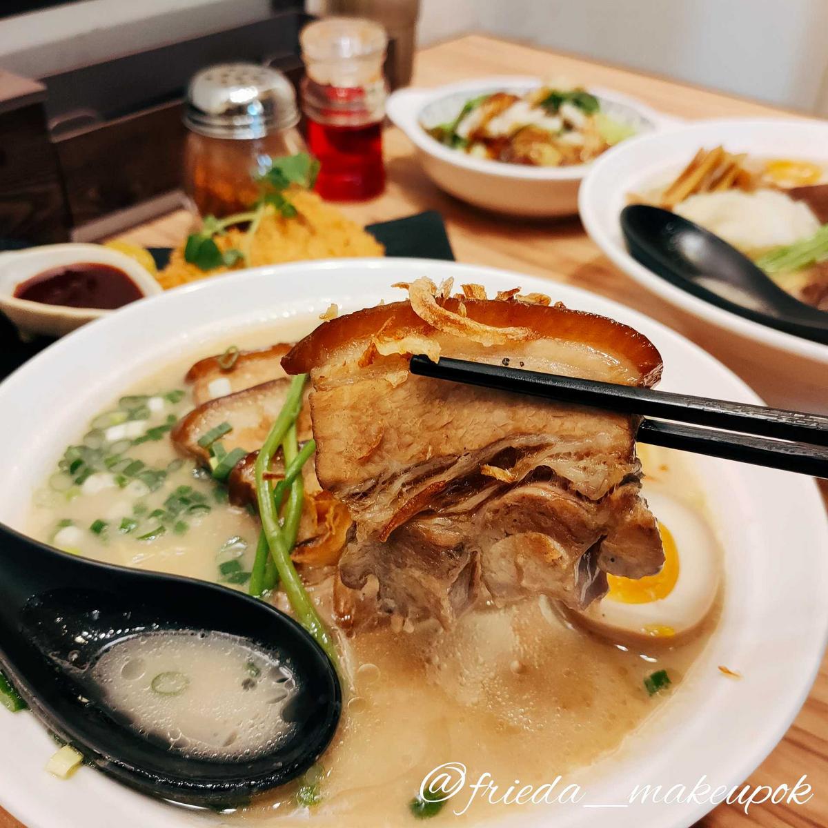 肥嫩五花肉一上桌,直接澎派華麗登場,那Q彈又油亮的色澤,等不及想大口咬一波XDD,不得不說厚度誠意十足呢!湯頭我們的選黃金比例,再看看碗中其他好料,直接送一顆糖心蛋捏~真是阿撒立,,細麵的嚼勁與彈性也非常剛好,醇濃的湯底讓整碗的美味更加深刻~