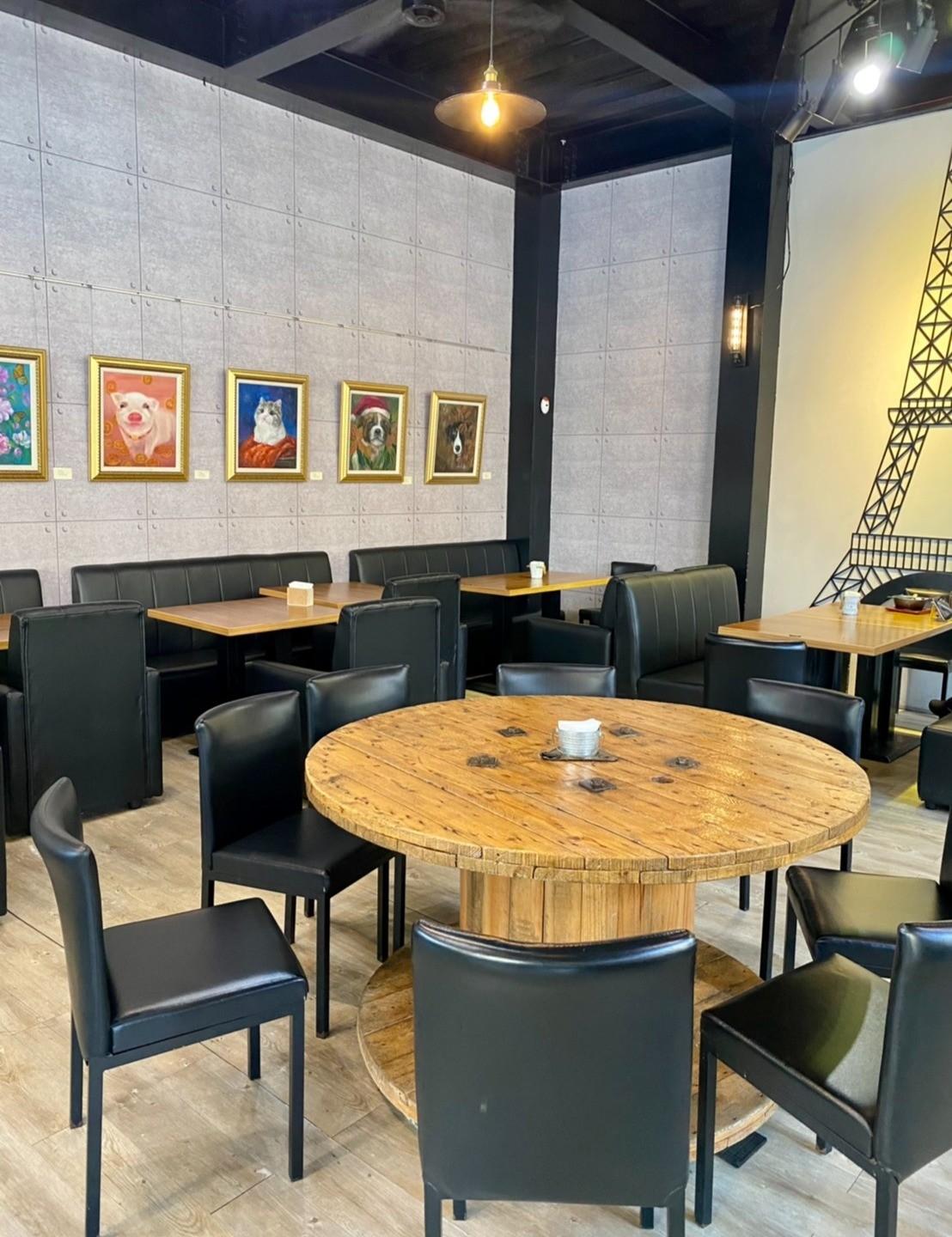 店內的座位很多,可以容納很多客人聚餐,沒有太多裝潢,但是店內不定期會更新畫作,有時候會有畫展合作展出。