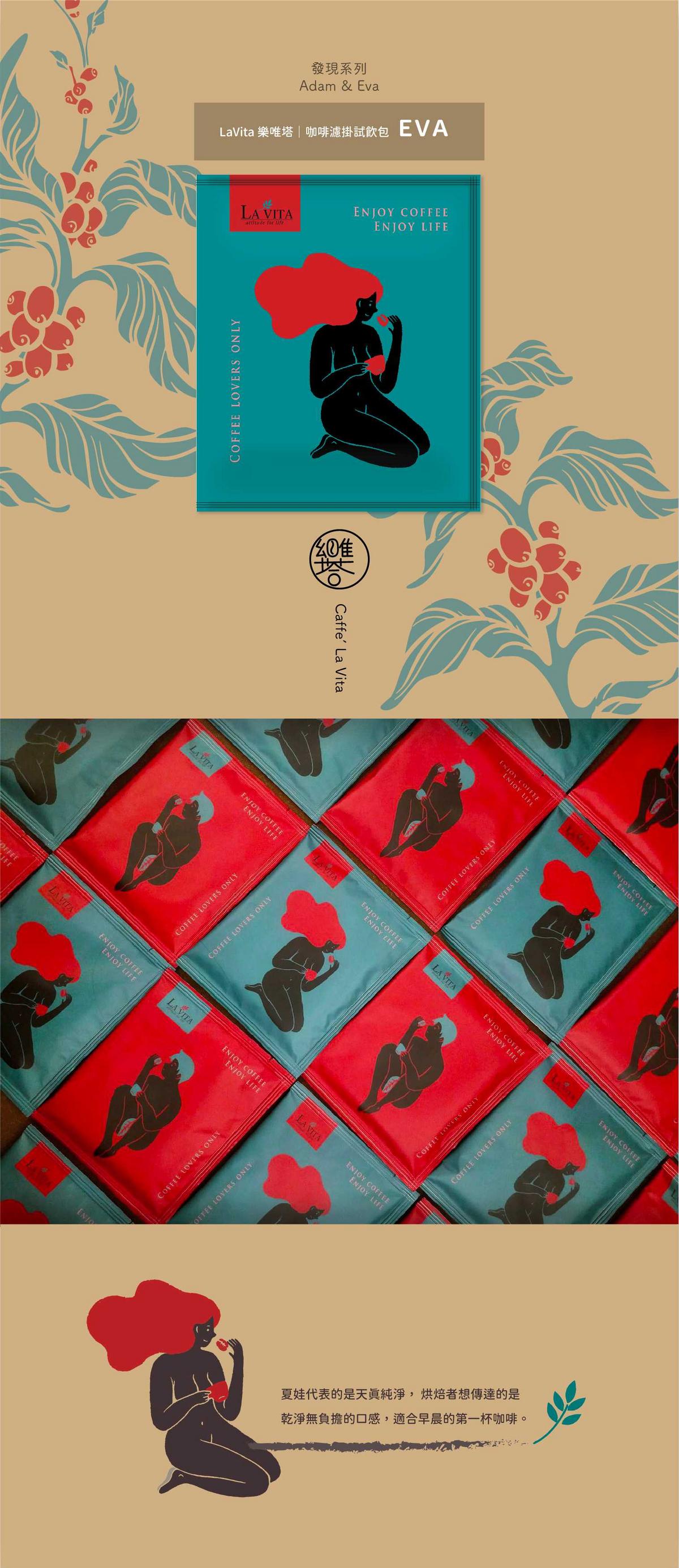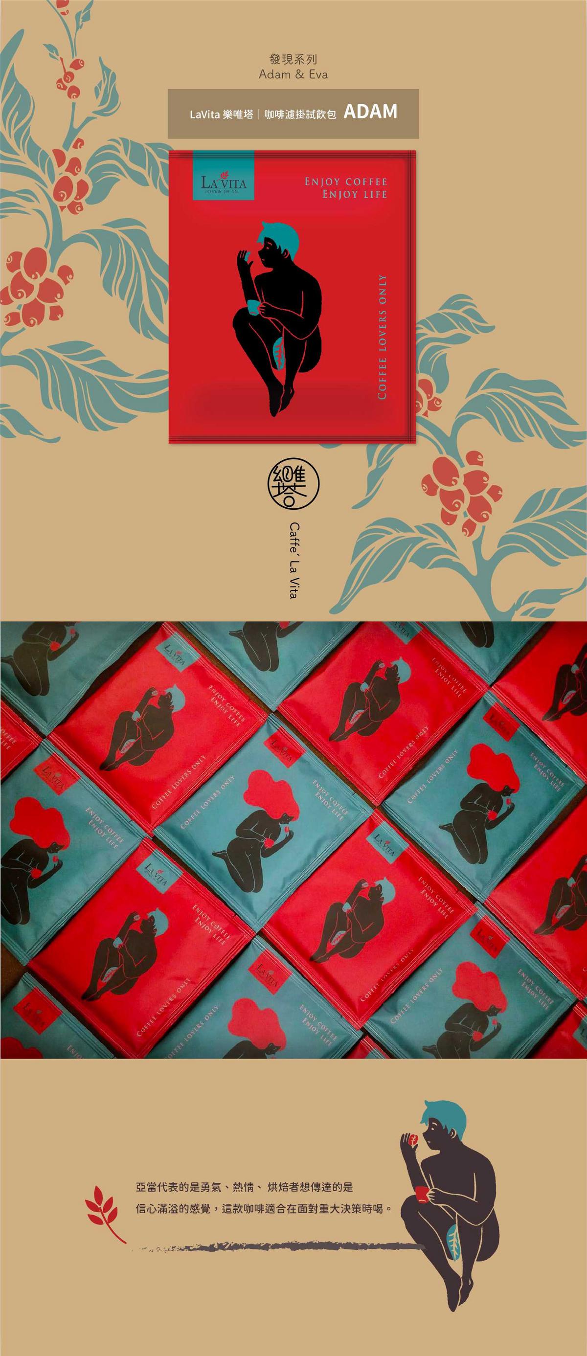 今年幫Coffee LaVita設計的第一款咖啡濾掛包,用亞當與夏娃的概念去做他們家的初代經典咖啡。