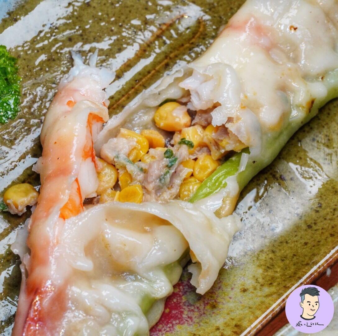 裡頭包入整隻超長蝦子還有玉米跟高麗菜豬肉內餡