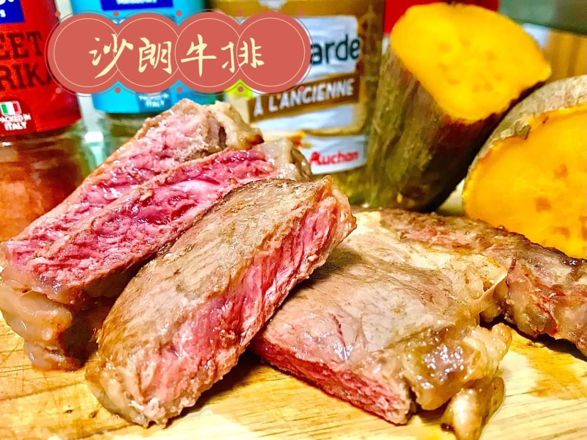 🥩牛排起鍋後切片,再搭配上海鹽、胡椒粉、芥末子醬一起吃😋超棒的!!!