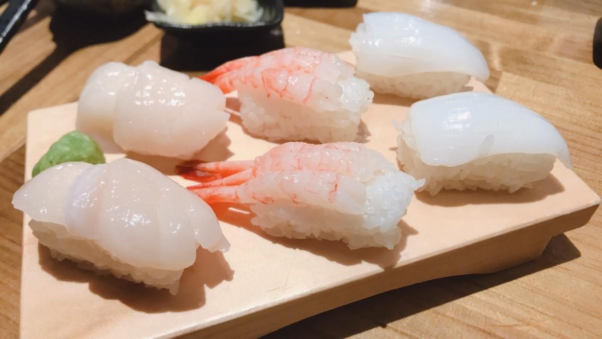 除了炙燒壽司是招牌,實際吃過的小甜蝦、干貝及花枝壽司,都保留了食材的原味。