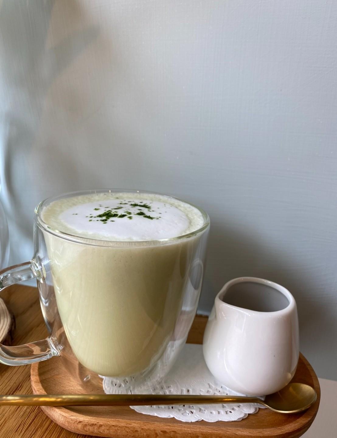 淡淡的綠色很舒服,完全是酪梨色,旁邊附上一小壺義式濃縮咖啡。