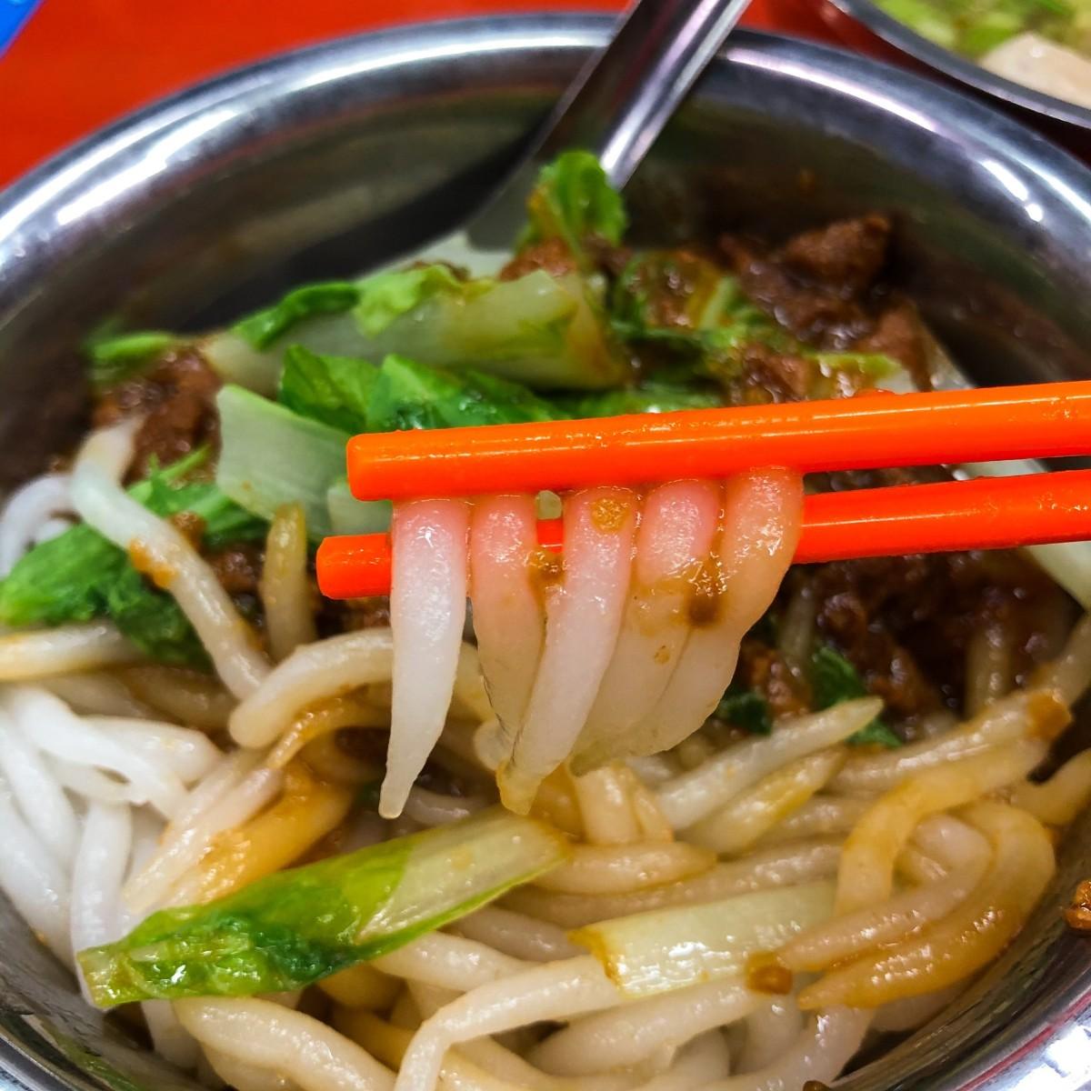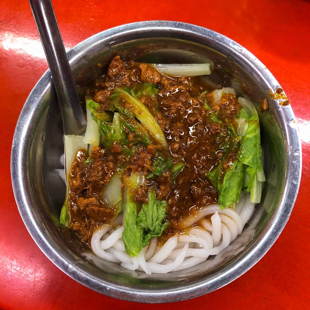 炸醬吃起來很香,但可惜的是煮麵水可以再瀝乾一點,將米苔目及炸醬拌在一起後,味道會顯得有點淡,而米苔目是店家以在來米手工製作的,口感Q彈,青菜也是很豪邁地給了一大把,整體來說還不錯👍👍