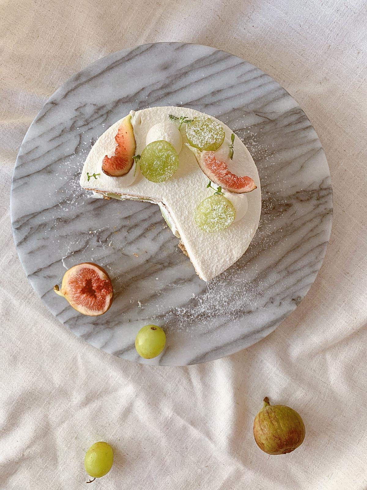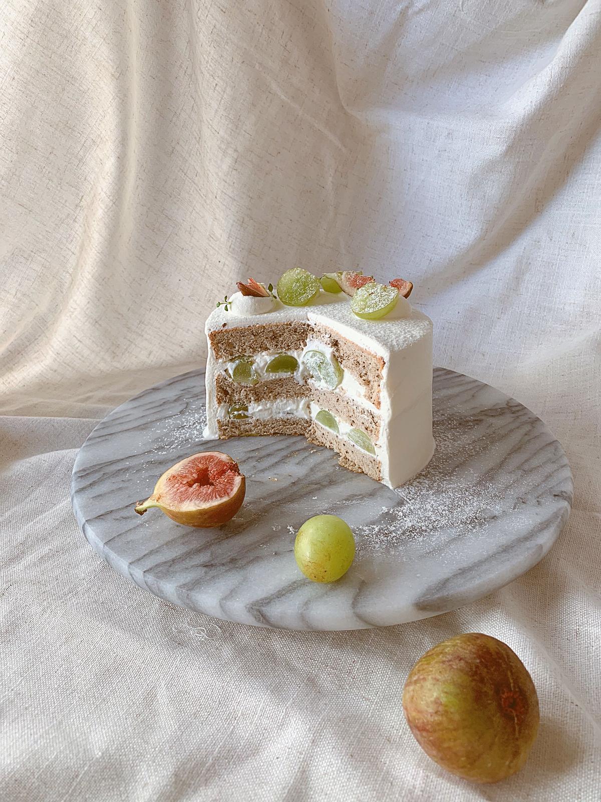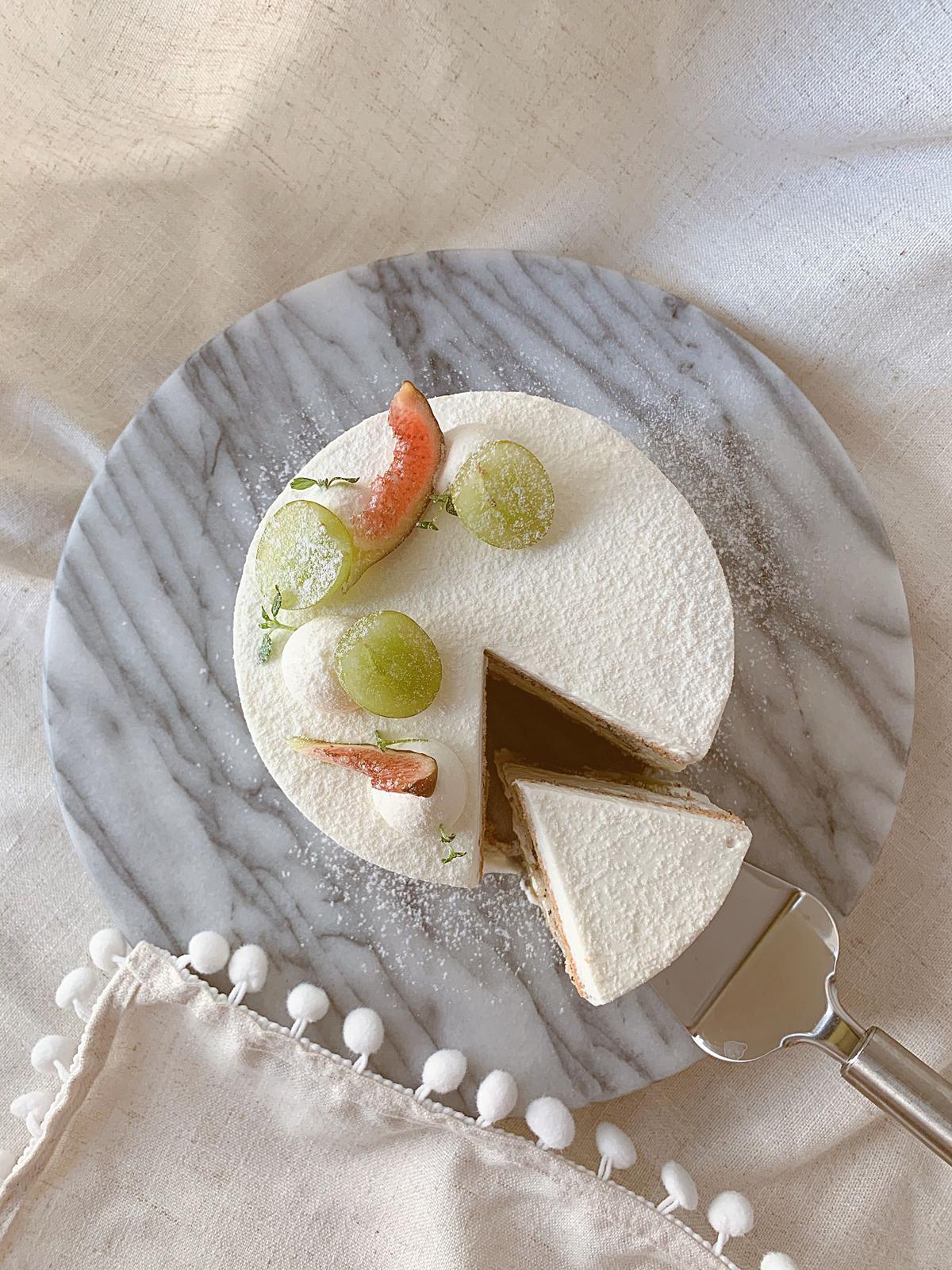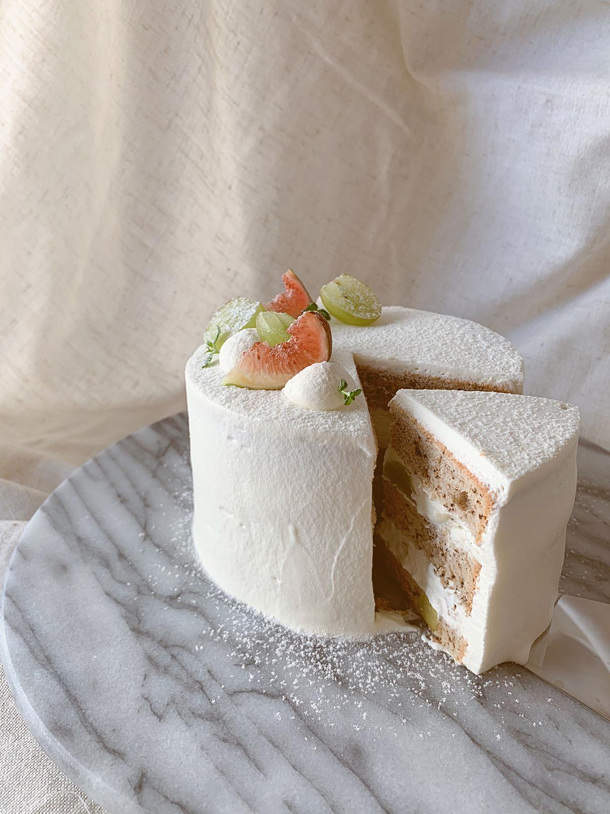 一直很想試試看葡萄伯爵的口味,也想嘗試細緻的裝飾以及留很多白的蛋糕(其實最想的是練習抹面🙈) 最後成果自己很喜歡,馬上背景布ㄧ鋪,拍了八百張,張張都喜歡,有點韓式蛋糕感 結論就是果然人人家裡都應該有塊好布啊~