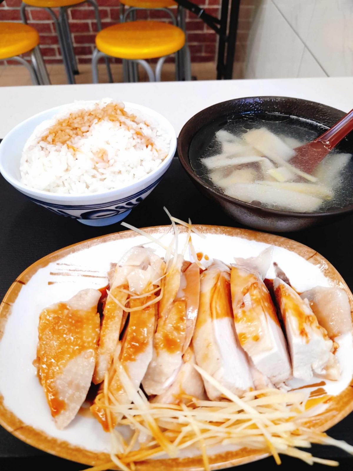 雞肉飯,用料大方實在,給你一整盤滿滿的雞肉,現點現切,肉質軟嫩鮮甜,搭配醬油 辣椒醬很開胃,米飯粒粒分明,竹筍湯,竹筍清脆多汁湯頭清爽好喝。 #雞肉飯 #白斬雞 #台北美食 #古亭美食