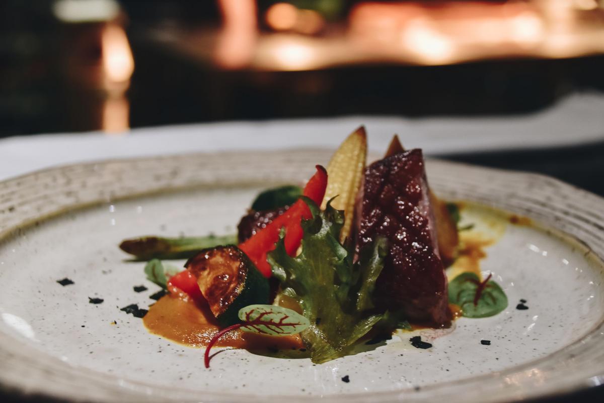 炸豬菲力外皮酥脆內層軟嫩,不會有任何的柴感,至於鴨胸是我沒那麼喜歡雖然擺盤跟鴨皮部分處理的很好(醬汁特讚)肉的部分我就覺得太硬了一點。