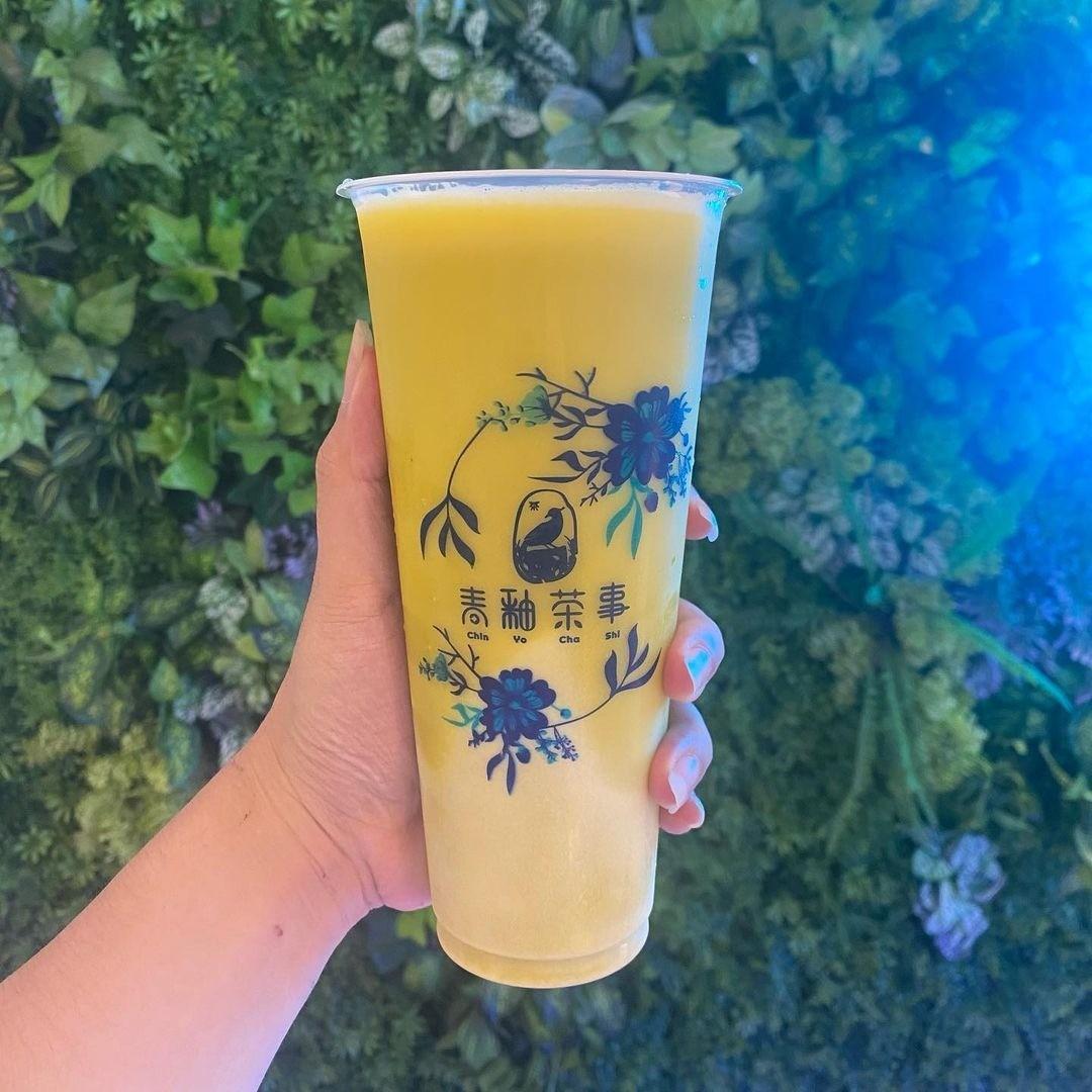 是藍甘菊加上多多、檸檬跟奶蓋的飲品