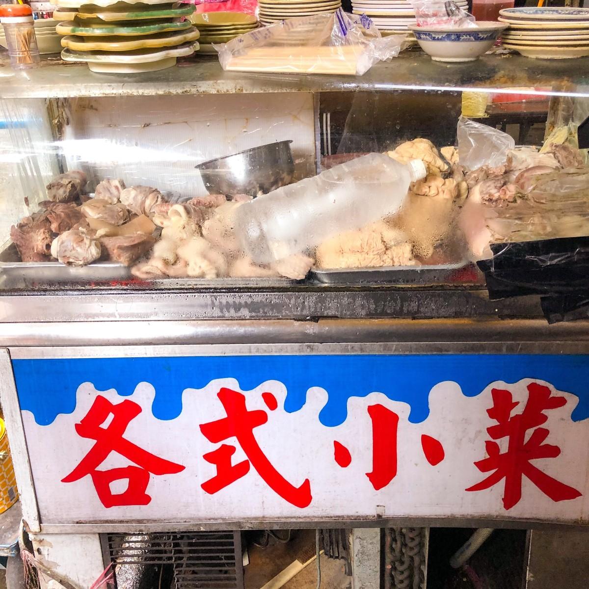 櫥窗裡放了很多豬的部位,大腸、粉腸、肝璉、嘴邊肉、豬皮...應有盡有,客人可以挑選自己想要吃的部位