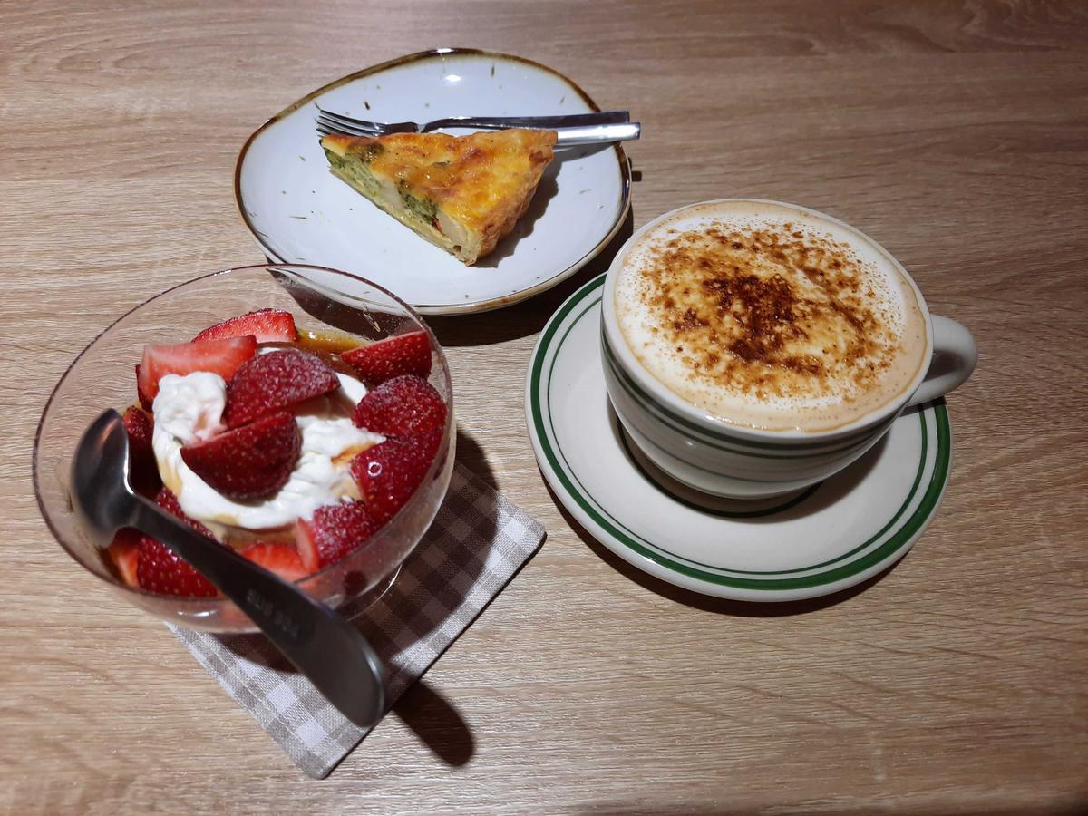 四分之旅甜點工作室,今年開始有內用,北歐簡約裝潢,很有質感氣氛佳,搭配輕柔的音樂,每天的推出的甜點,很驚喜,也有限定內用的甜點,價格親民,今天有法式鹹派很不錯,當然要再點草莓季才有的草莓焦糖布丁,很滿足的放假日❤