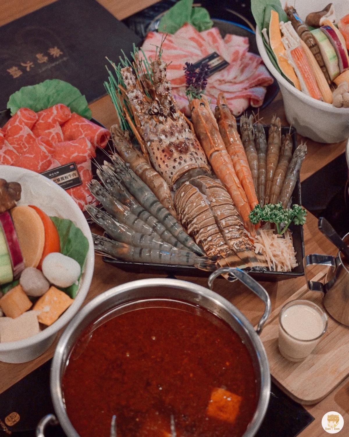 選了雙人的招牌龍蝦套餐以龍蝦、草蝦、肥豬蝦、天使紅蝦和白蝦煮成的蝦拼盤和老饕牛、松阪豬為主菜,另外還有兩份菜盤、兩份附餐、兩份湯頭,白飯、飲料甜點冰淇淋無限量供應自取。