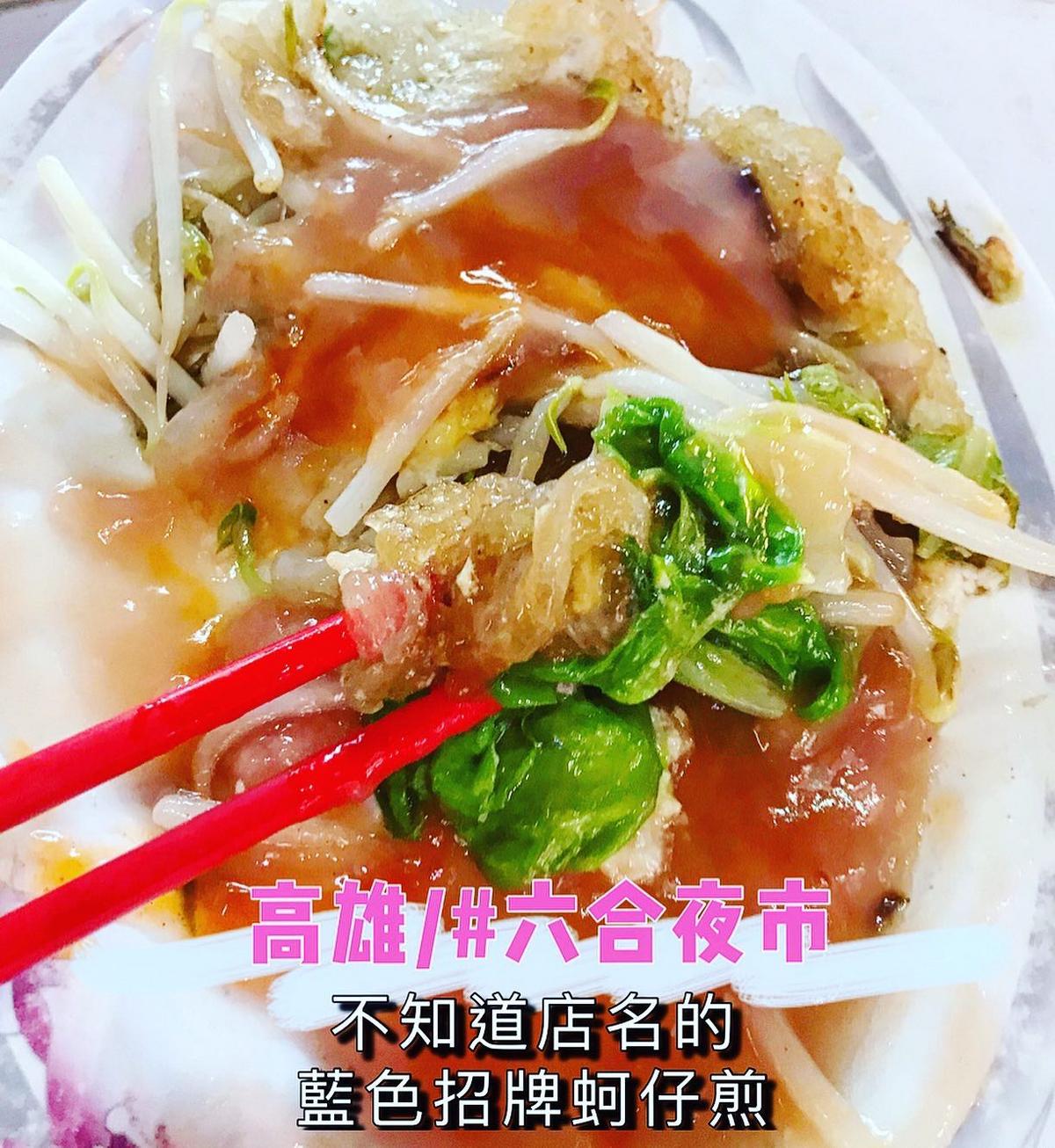 高雄/#六合夜市 不知道店名的藍色招牌蚵仔煎🦪蚵仔煎就是要煎到恰恰!