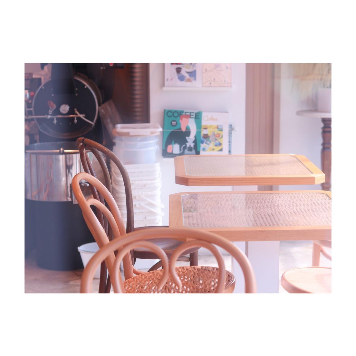 乾淨的純白與青翠的草綠色,是我們對有明心的第一印象。店內大概十來個座位,有靠近大片玻璃窗、陽光灑落的座位區,也有鄰近吧檯、能夠第一線觀看咖啡製作過程的吧台區,精緻的烘豆機也很吸睛,小小的店卻一應俱全,只是看著舒服的擺設與配置也覺得療癒。