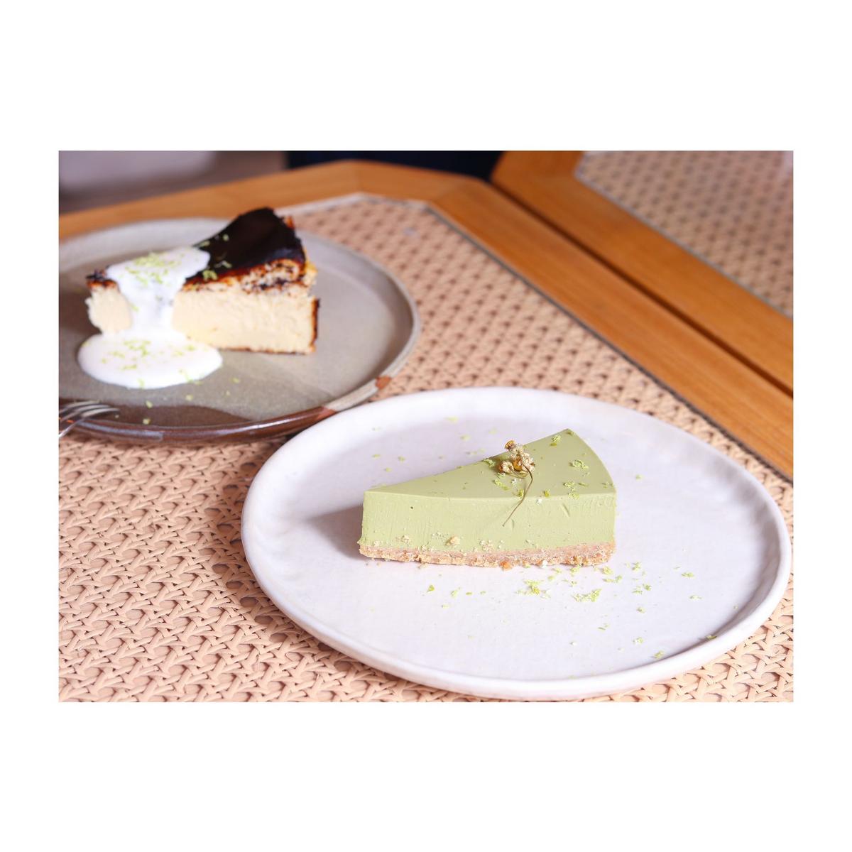至於甜點,原本店主說不提供巴斯克乳酪蛋糕,因為多烤了五分鐘,口感不那麼濕潤。在我們千萬拜託下,店主還貼心地折價50元讓我們享用,吃起來濃郁的奶香、綿密的口感,還有一旁滑順的鮮奶油,根本超級好吃,絲毫沒有不夠濕潤的問題!金萱生乳酪則茶香濃郁,上頭還擺有小花, #抹茶控 說不定也會愛這款,我們兩種蛋糕都好喜歡呀 !