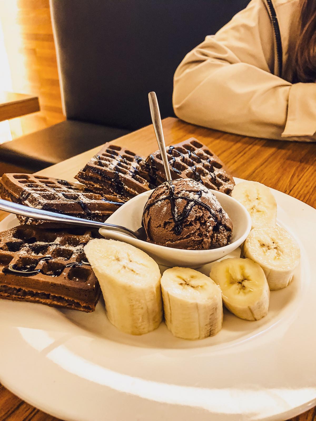 🌟最推薦鬆餅,外酥內軟加上巧克力冰淇淋根本啵棒🥴而且鬆餅和冰淇淋都不會很甜,搭著香蕉一起吃甜味超剛好(雖然我不怎麼愛吃香蕉🤣