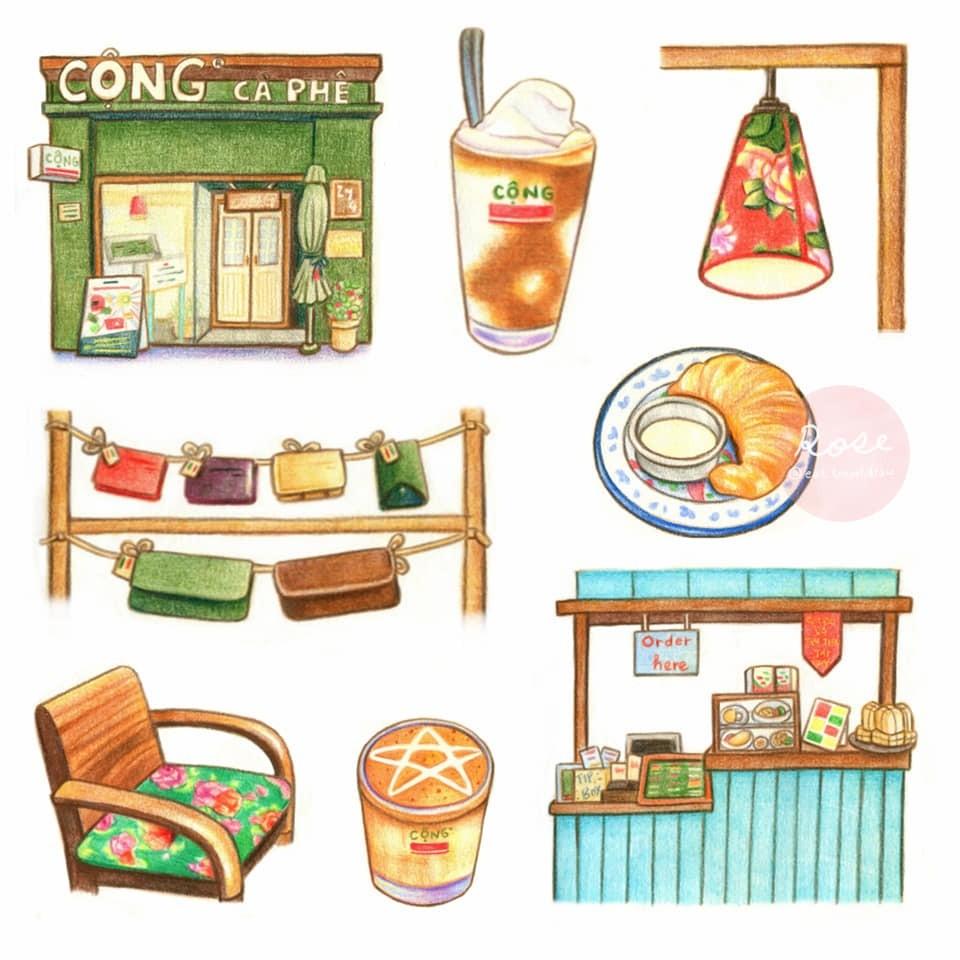 Cộng Cà Phê 是我在越南最喜歡的咖啡廳之一,除了咖啡椰奶冰沙超好喝外,也很愛店裡營造的懷舊復古氛圍🥰 本篇插畫收錄於Rose的越南手繪旅遊書,即將於明年出版唷📚 ----- 🌹歡迎點此連結逛逛我的其他插畫平台~ https://linktr.ee/rose_illustration ----- #色鉛筆插畫 #美食插畫 #手繪菜單 #色鉛筆作品 #水性色鉛筆 #色鉛筆甜點 #甜點插畫 #咖啡插畫