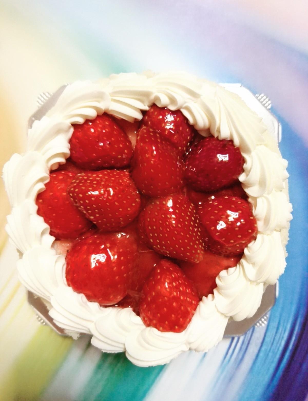 打開蓋子後,我的天啊 ! 上層中間布滿許多大顆的草莓,並且淋上許多果膠,視覺上真的是會讓大家開心的歡呼 !