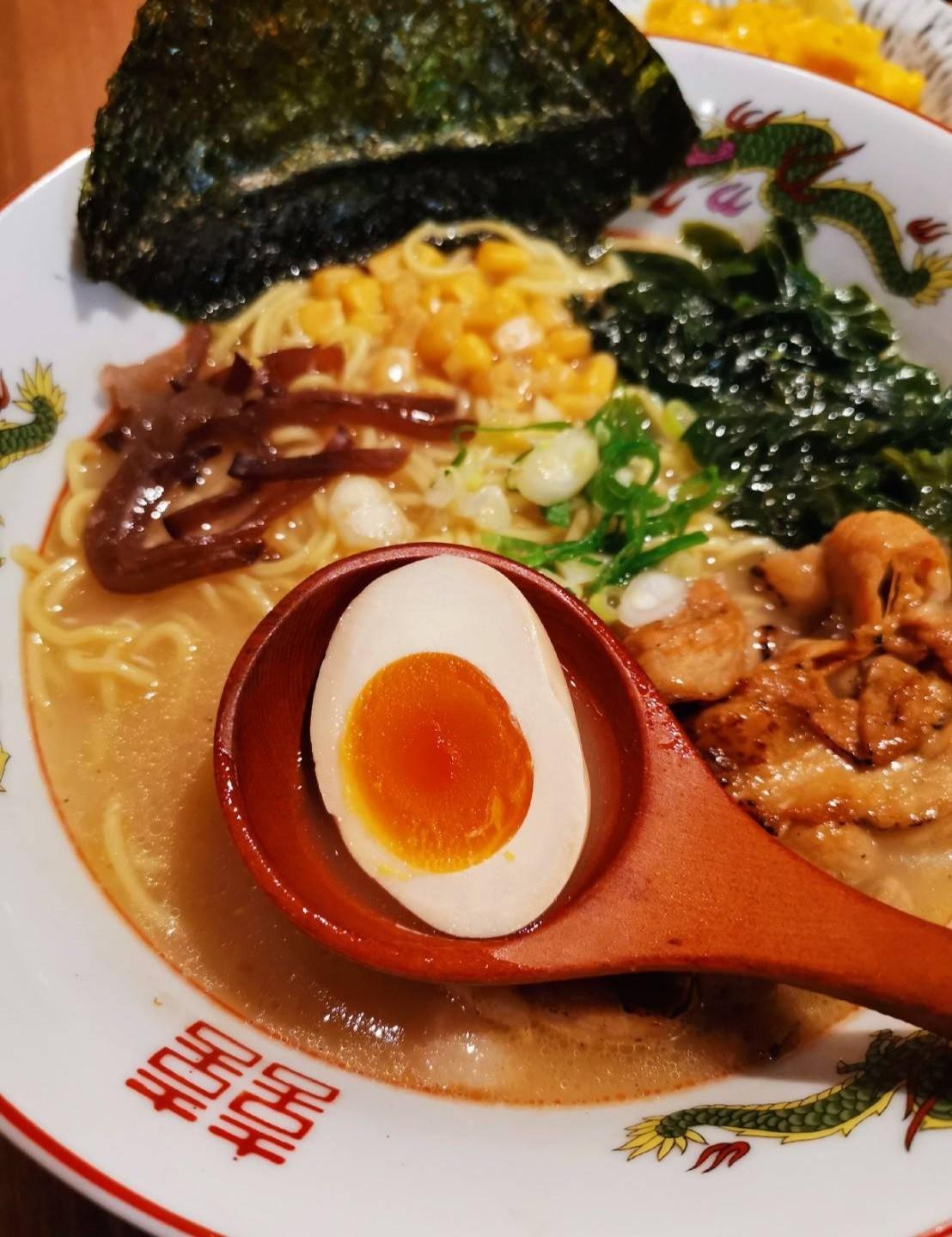 還有娃娃菜,淋上特調胡麻醬汁,QQ蛋黃流出來超療癒,口感細緻柔嫩,搭配食用散發胡麻醬的香氣,十分營養美味,燒肉麵一吃圈粉,