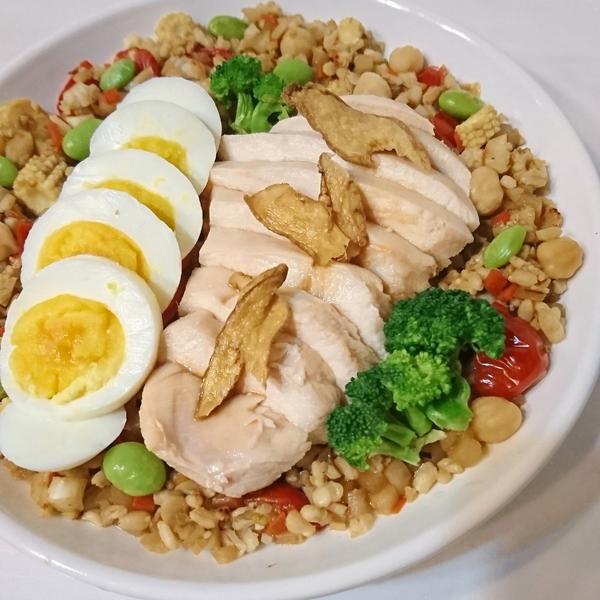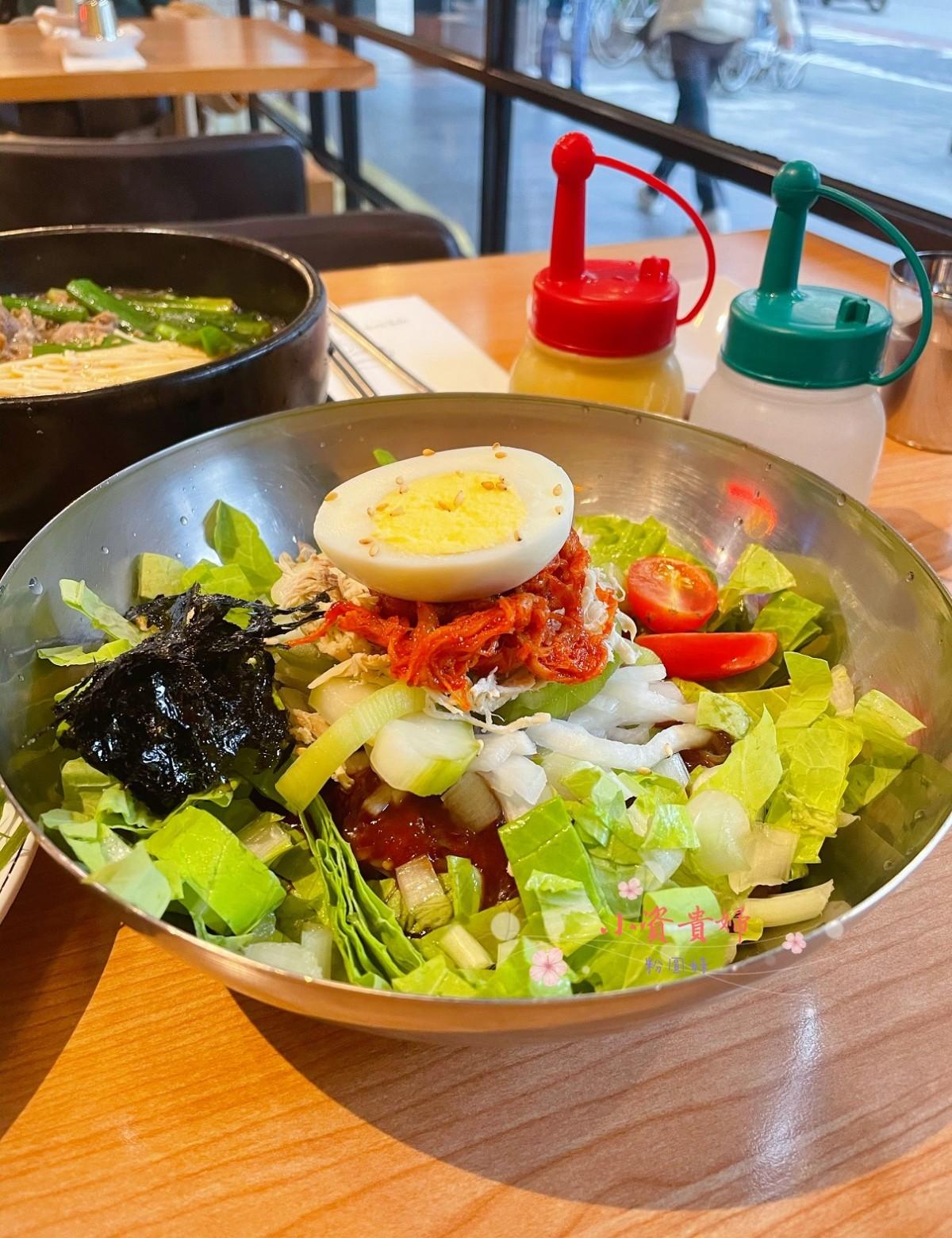 下面的冷麵有搭配很多的辣醬,上面還有雞肉絲跟泡菜,口感很豐富