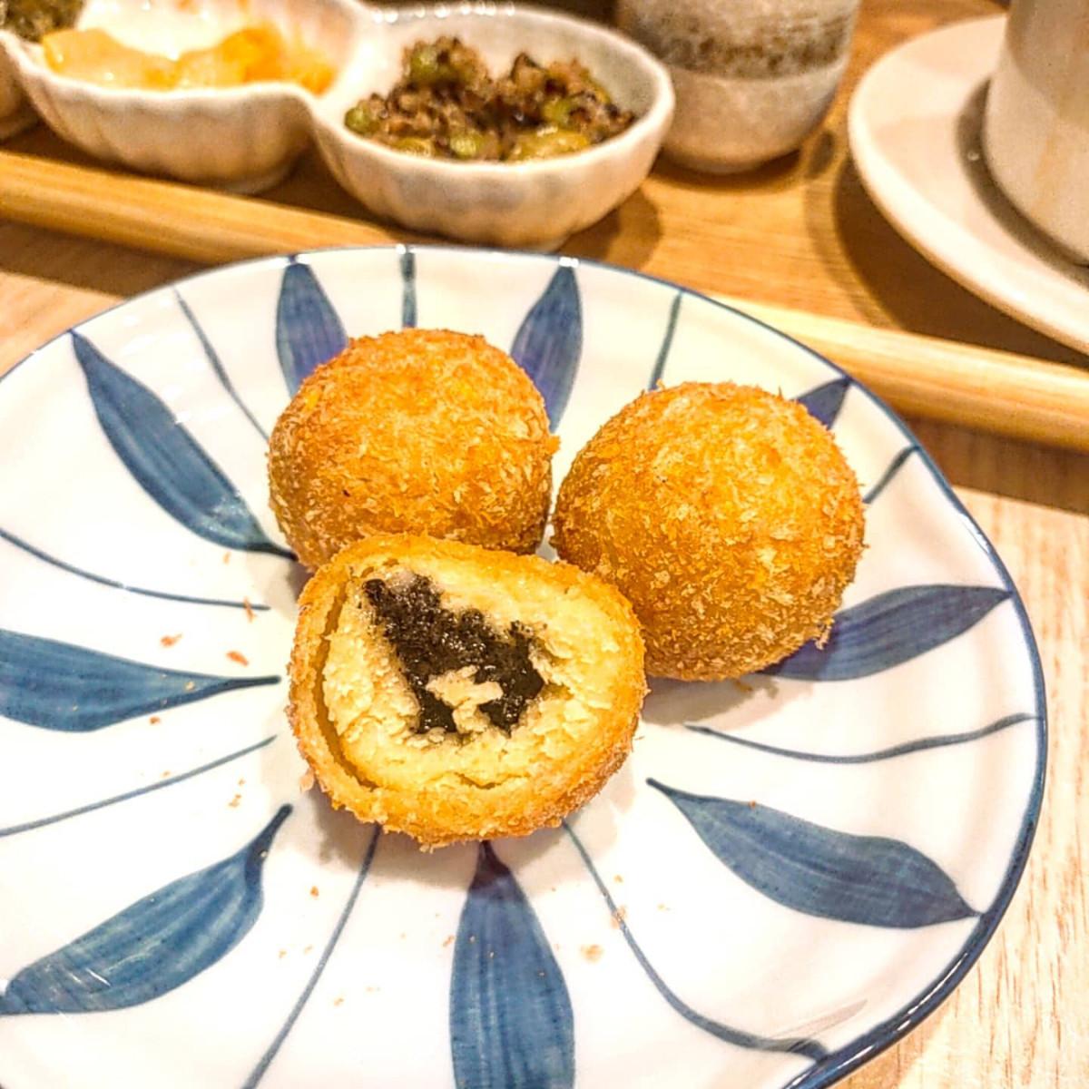 雖然只有3顆,但是很值得‼️綿密的地瓜包裹著濃郁的黑芝麻餡,外層的皮不會太厚,而地瓜和芝麻的味道也很融合👍🏻