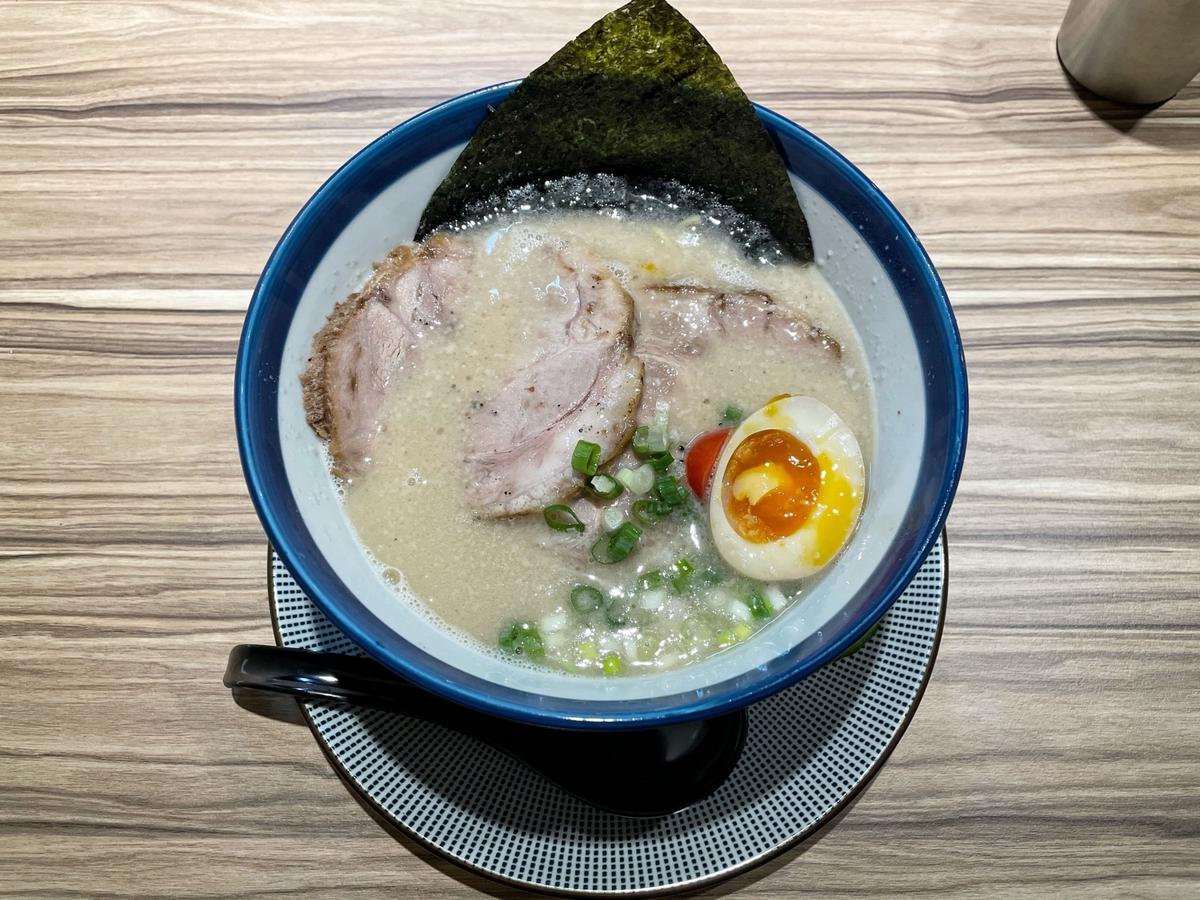來自福岡的博多拉麵,醇香的豚骨湯頭油脂粒細緻、鹹香不膩,尾韻帶著一股蒜香。加入檸檬片後豚骨味更為突出,淡淡的檸檬酸也為整體增添風味,要稍微注意加太多或是放太久會變苦。