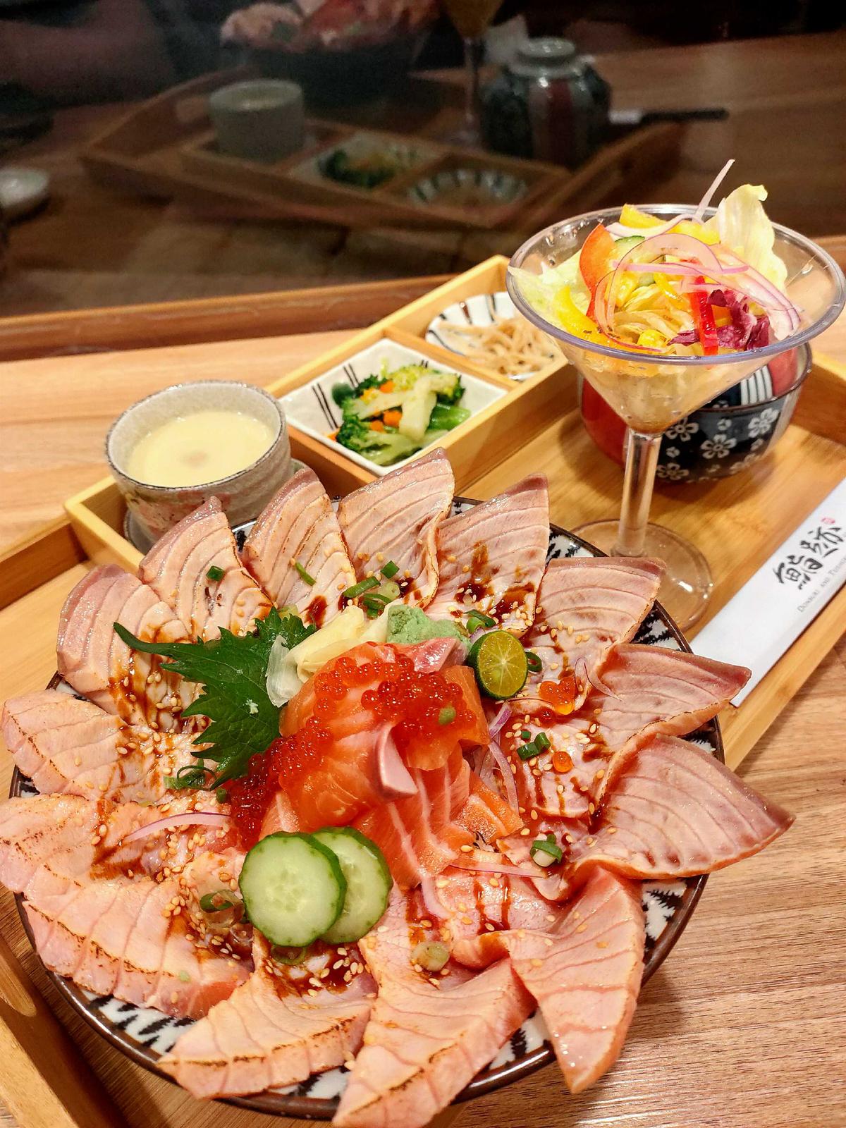 鮭魚滿貫雙拼丼 NT$290(定食+$59)