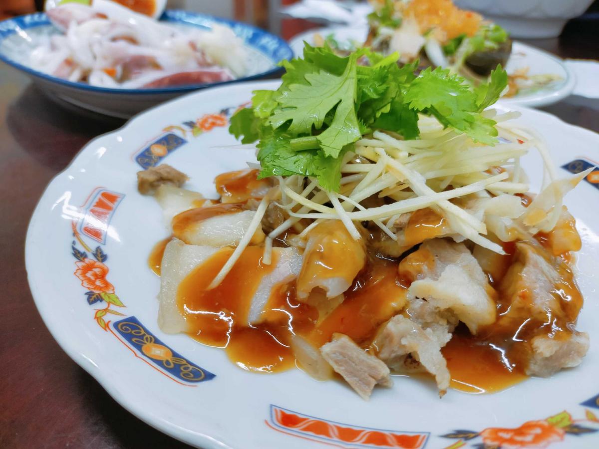三層肉+肝蓮+頭骨肉,頭骨肉比較特殊,嫩嫩帶點油花,綿綿的,淋上蒜泥醬油再搭配薑絲真的很絕👍