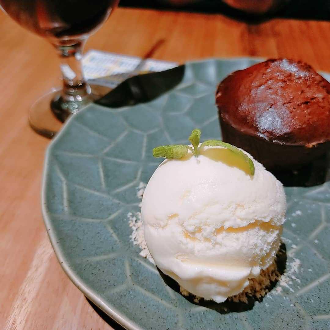 最後甜點來了熔岩巧克力蛋糕、蘋果派+香草冰淇淋