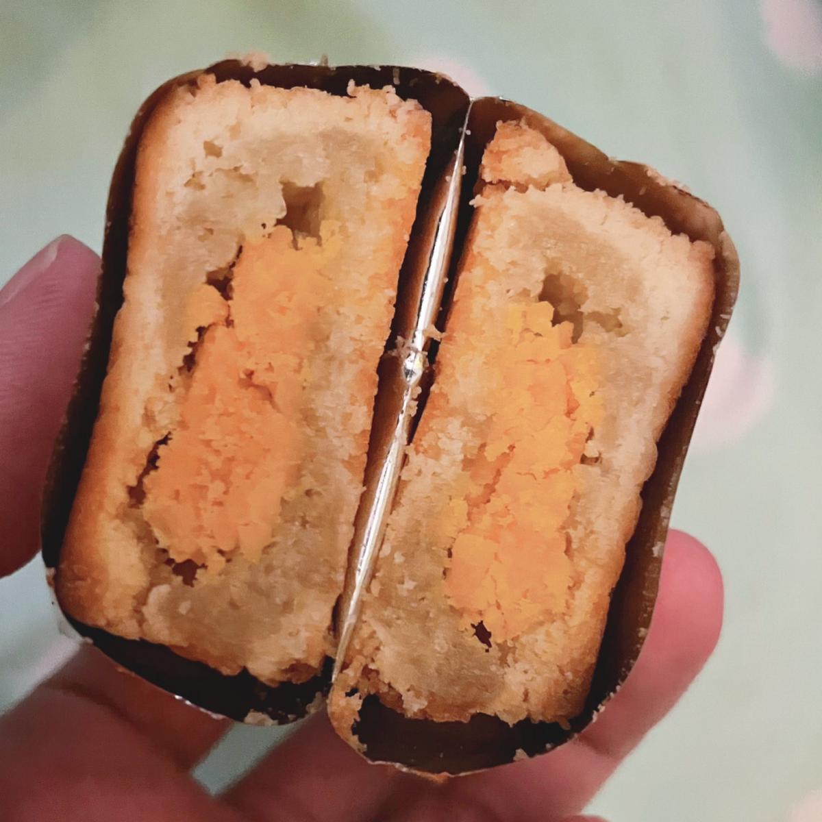 甜度較明顯,但有蛋黃的鹹香調和,連吃兩個不會膩,配茶的話可以一次吃三個。(剛剛不是說一時之間吃不完嗎⋯⋯)